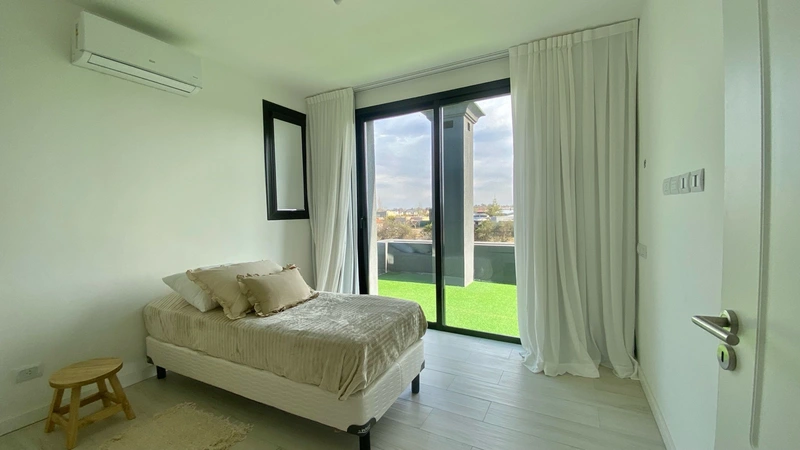 CASA EN ALQUILER - AMUEBLADA - EN PUERTOS DEL LAGO - CON PISCINA La casa de 237 m2 totales construidos, 200 m2 cubiertos y 37 semicubiertos, se encuentra desarrollada sobre un excelente lote de 600m2 dentro del barrio Riberas. La casa de destaca por la calidad de sus terminaciones, el gran tamaño de sus ambientes y gracias a su distribución la casa logra un concepto moderno en todos sus ambientes. Cuenta con losa radiante sectorizada y aires acondicionados frio* en todos sus ambientes. Se entrega completamente amueblada. * Distribución: Planta Baja: - Cochera doble. - Hall de recepción doble altura con amplios espacios de guardado. - Toilette. - Living comedor con amplios ventanales doble vidrio (DVH) al jardín y de concepto integrado con la cocina. - Cocina completa con amplias alacenas y bajo mesadas, equipada con horno, cocina y heladera. - Lavadero con amplios espacios de guardado e ingreso independiente. - Galería amplia, equipada con bacha, mesada y parrilla completa. * Planta Alta: - Habitación en suite muy amplia, con amplios espacios de guardado, vestidor, baño completo y con salida a amplia y funcional terraza con césped sintético, espacio ideal para poder aprovechar. - Dos habitaciones amplias, con placares completos, que comparten un baño completo con bañera de concepto compartimentado. - Espacio de circulación amplio * Exterior: - Piscina con iluminación. - Jardín con riego automatico. RIBERAS El Barrio Riberas en Puertos del Lago, Escobar, es una comunidad con lotes de aproximadamente 650 m² con salida navegable a un lago propio de 7 hectáreas, el cual conecta con el gran lago central del emprendimiento Puertos. Este barrio, desarrollado por Consultatio, forma parte de una ciudad integral de más de 1.400 hectáreas que combina la vida natural con una infraestructura completa que incluye servicios como agua, luz, gas, pavimento, un centro comercial, colegios, un club deportivo y seguridad 24 horas. Características principales del Barrio Riberas: Lotes: Ofrece lotes de aproximadamente 650 m². Lago propio: Cada barrio tiene su propio lago, y Riberas cuenta con uno de 7 hectáreas. Navegabilidad: Su lago tiene salida navegable al gran lago central de Puertos. Infraestructura y servicios de Puertos del Lago: Ciudad integral: Puertos es una ciudad planificada en Escobar con más de 1.400 hectáreas. Lago central: Un lago de 200 hectáreas domina el paisaje. Servicios: Cuenta con agua corriente, desagüe cloacal, gas natural, luz y pavimento. Acceso: Tiene acceso directo desde la Panamericana. Instalaciones: Dispone de colegios, un centro comercial, y un centro deportivo. Reserva natural: Incluye 60 hectáreas de reserva natural para actividades al aire libre. PUERTOS DEL LAGO Puertos del Lago es un barrio privado en Argentina, ubicado en Escobar, que combina urbanismo moderno con naturaleza, destacándose por su gran lago central y reserva ecológica, con más de 1400 hectáreas y diversas amenidades como colegios, comercios, y un club deportivo. Ofrece un estilo de vida familiar con énfasis en actividades acuáticas, deportes al aire libre y un sistema de senderos para bicicletas y peatones, promoviendo la vida sana y el contacto con la naturaleza dentro de un entorno seguro. Características Principales: Ubicación y Acceso: Es un desarrollo urbano situado en el Partido de Escobar, con acceso directo desde la Panamericana. Diseño Urbanístico y Paisajístico: Combina la comodidad de una ciudad con un fuerte enfoque en el cuidado del medio ambiente y el contacto con la naturaleza. Lago Central y Reserva: Un lago de 200 hectáreas sirve como eje central del desarrollo y se complementa con una reserva ecológica de 60 hectáreas para preservar la flora y fauna. Infraestructura y Servicios: Cuenta con colegios privados (como St. John's y Northills), un área comercial, club house, canchas deportivas, y un sistem
