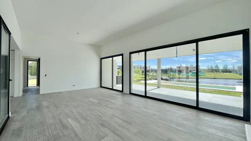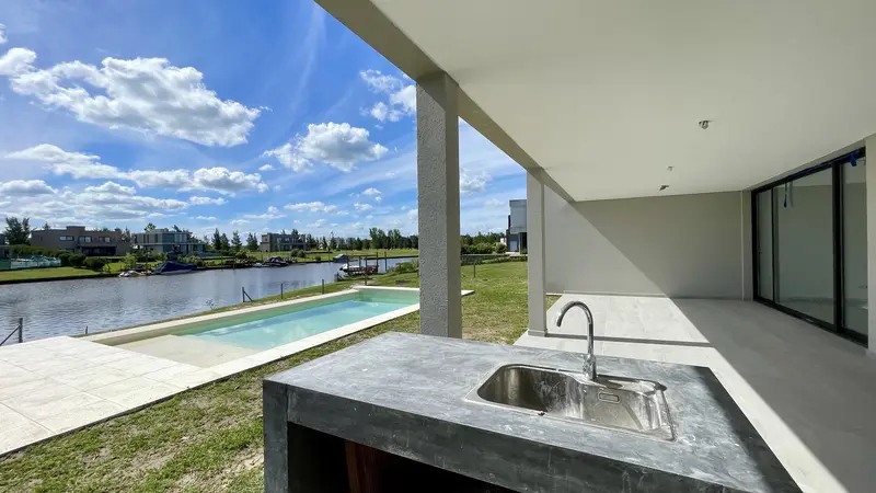 CASA AL RIO EN NAUDIR AGUAS PRIVADAS - ESCOBAR - A ESTRENAR - AMARRA PROPIA DISTRIBUCION: - Cochera doble cubierta.- Hall de recepcion amplio.- Living comedor con amplios ventanales y altura y media.- Cocina de concepto individual, muy amplia, con isla y cocina en el centro, muebles de melamina simil madera y marmol de silestone, ademas cuenta con espacio para comedor diario.- Playroom amplio.- Lavadero y baño completo.- Dos habitaciones con placares que comparten un baño completo.- Habitacion en suite con vestidor amplio, baño compartimentado con doble bacha y ducha.- Galeria amplia, con barra.- Piscina con solarium, playa humeda, iluminacion y borde infinito. CARACTERISTICAS GENERALES Lote al río de 1.114,82 m con pileta de 9 x 3,5 m* Orientación: Oeste* Metros totales construidos: 350 m2* Superficie cubierta: 259 m?* Superficie semicubierta: 91 m?* Propiedad desarrollada en 1 planta Características constructivas y equipamiento:* Sistema de construcción tradicional con techos de loza yladrillos portantes.* Fundaciones construidas con plateas rígidas.* Revestimientos interiores con aplicación de yeso en paredes y cielorrasos.* Revestimiento exterior tipo Tarquini plástico en dos colores.* Carpintería línea Módena, color anodizado natural o negro, con DVH (doble vidrio hermético).* Calefacción por piso radiante mediante caldera dual.* Sanitarios marca Roca.* Griferías marca Hydros.* Pisos de porcelanato símil madera* Mobiliario incluido: la casa se entrega con muebles de cocina, lavadero, vestidor e interiores de placard. En cocina y vestidor, los muebles son de Melamina Touch.* Conexión preparada para aires acondicionados en todos los ambientes.* Entrada realizada en cemento alisado.* Parrilla, horno, anate y campana incluidos. Las medidas, porcentuales, superficies y designaciones fueron proporcionadas por el propietario, las definitivas de cada planta son las que resultan del título de propiedad y del plano municipal. El precio puede estar sujeto a modificaciones. En cumplimiento con la normativa vigente, los asistentes NO ejercen el corretaje inmobiliario. La intermediación y conclusión de las operaciones inmobiliarias es desarrollada por Martilleros y Corredores Públicos. Esta Oficina Inmobiliaria se encuentra a cargo de María Virginia Mattio CSI 6752 y F. Lusarreta CUCICBA 9385, adheridas al Sistema Coldwell Banker Puerto Norte Group, domicilio Pasaje de las Ciencias 75, Piso 8, Nordelta Provincia de Buenos Aires. © 2025 Coldwell Banker Real Estate LLC. Todos los derechos reservados. Cada Oficina es de Propiedad y Operación Independiente. Coldwell Banker y el logo de Coldwell Banker están registrados y son marcas de servicio de propiedad de Coldwell Banker Real Estate LLC.