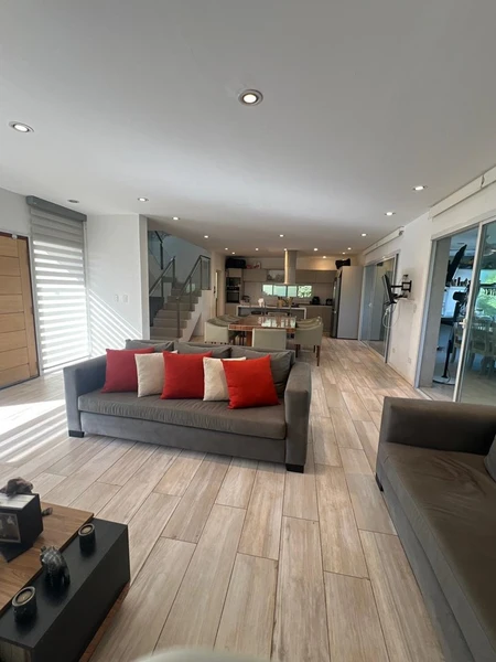 Moderna casa en venta , lista para mudarte!!! En un barrio consolidado y con amenities. Acepta departamento, lote o auto como parte de pago. Consultar Casa en venta en Barrio Santa Guadalupe, desarrollada en lote de 684m² en cul de sac. Excelente casa moderna en muy buen estado general, desarrollada en dos plantas, con pileta climatizada. Sistema de energía con paneles solares. Cuenta con una superficie cubierta de 190 m² y semicubierta de 79 m² La propiedad se desarrolla en dos plantas con una distribución funcional de amplios y luminosos ambientes En Planta baja • Gran living comedor con cocina integrada, moderna y equipada; con amplios ventanales a la galería y excelente luminosidad. • Toilette de recepción • Escritorio o dormitorio • Galería cerrada con cerramientos de vidrio, barra y parrilla completa • Lavadero independiente En Planta alta • Dos dormitorios con baño completo • Dormitorio principal en suite con vestidor • Blackouts eléctricos en dormitorios Exterior: • Piscina con venecitas, climatizada mediante paneles con energía solar • Baño completo y cuarto de guardado • Cochera semicubierta para dos autos • Entrada imperial • Sistema de riego Algunas características: Calefacción por loza radiante; Caldera dual; equipos de aire acondicionado en todos los ambientes; sistema de energía con paneles solares que alimentan una fase y ademas climatizan la pileta. Todos los blackout de los dormitorios son electricos. Sobre el barrio: Santa Guadalupe es un barrio totalmente consolidado, tranquilo y familiar, con mucha arboleda, senderos y áreas verdes. Posee club House, cancha de fútbol, 4 de tenis, mercado exclusivo, café-restaurant, plaza de juegos. El barrio cuenta con guardia y seguridad las 24hs, asfalto, doble alambrado perimetral con eléctrico y sistema de monitoreo. Agua corriente potable, red eléctrica, alumbrado, gas natural, cloacas y desagües pluviales, todo subterráneo. Internet por fibra óptica. Está ubicado dentro de Pilar del Este, sobre la ruta 25, avenida doble vía, a 6.5 km del pueblo de Pilar y a 9 km del de Escobar. Desde el Ramal Pilar de Panamericana a la altura del km 46 se accede por la Av. Caamaño, construida con una amplia calzada, es una de las vías comerciales más importantes de Pilar donde encontramos colegios, consultorios del H. Austral, oficinas, centros comerciales, supermercados. Una propiedad de diseño moderno en muy buen estado general con equipamiento completo, lista para mudarse y disfrutar. LAS MEDIDAS Y SUPERFICIES CONSIGNADAS EN LA PRESENTE SON APROXIMADAS Y NO RESULTAN VINCULANTES. LOS DATOS DEFINITIVOS SON LOS QUE SURGEN DEL TITULO DE PROPIEDAD. Matricula CPI: 3916 (CUCICBA)- Matricula CMCPSI 5927-\r\nLa información gráfica y escrita en el presente aviso es meramente a título estimativo y no forma parte de ningún tipo de documentación contractual. Las medidas y superficies descriptas en el presente son aproximadas y no resultan vinculantes, las definitivas surgirán del título de propiedad del inmueble referido. Así mismo los importes de tasas, servicios y expensas indicados están sujetos a verificación. El valor del inmueble indicado en el presente puede ser modificado sin previo aviso. Operación supeditada a que el propietario cumplimente con la Reg.2371 COTI. Nuestra oficina toma todas las medidas de seguridad e higiene según protocolo para protegernos del covid-19 la propiedad no es apta para personas con movilidad reducida Todas las operaciones inmobiliarias son objeto de intermediación y conclusión por parte del martillero y corredor público GUSTAVO ORTOLÁ MARTÍNEZ CUCICBA 3916 – CMCPSI 5927
