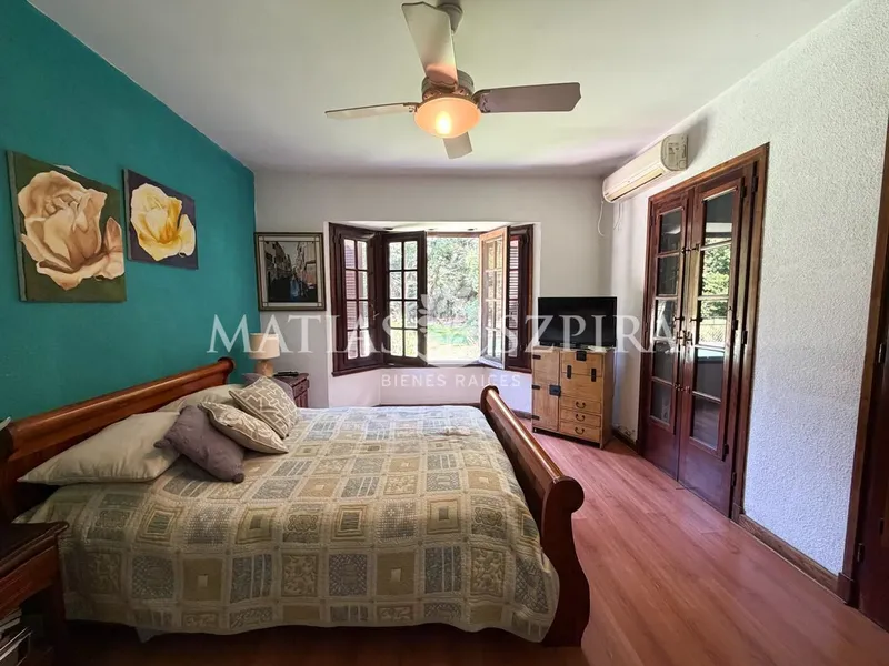 Casa 7 Ambientes en Country Club San Diego - Lote Central 2.000 m² Propiedad de estilo clásico colonial en ladrillo a la vista Desarrollada en dos plantas Lote central de 2.000 m² con parque arbolado y totalmente privado Ambientes amplios y muy luminosos, con ventanales de madera y vistas abiertas al verdePlanta Baja: Hall de recepción Living y comedor con salida al jardín Cocina con gran capacidad de guardado Toilette Lavadero con entrada independiente Master Suite en planta baja con vestidor y baño completo Dependencia de servicio con bañoPlanta Alta: Cuatro dormitorios con vistas al parque y balcón francés Dos baños completosExterior: Parque consolidado y parquizado Pileta cercada con solárium Quincho independiente con parrilla y espacio de comedor Cochera semicubierta para varios vehículosCountry Club San Diego: Seguridad 24 hs Club House, confiterías y gimnasio Piscina semiolímpica Cancha de golf de 18 hoyos con driving Tenis, paddle, hockey, fútbol, básquet y patín Plaza de juegos, equitación y polo Excelente acceso desde Acceso Oeste y Ruta 25