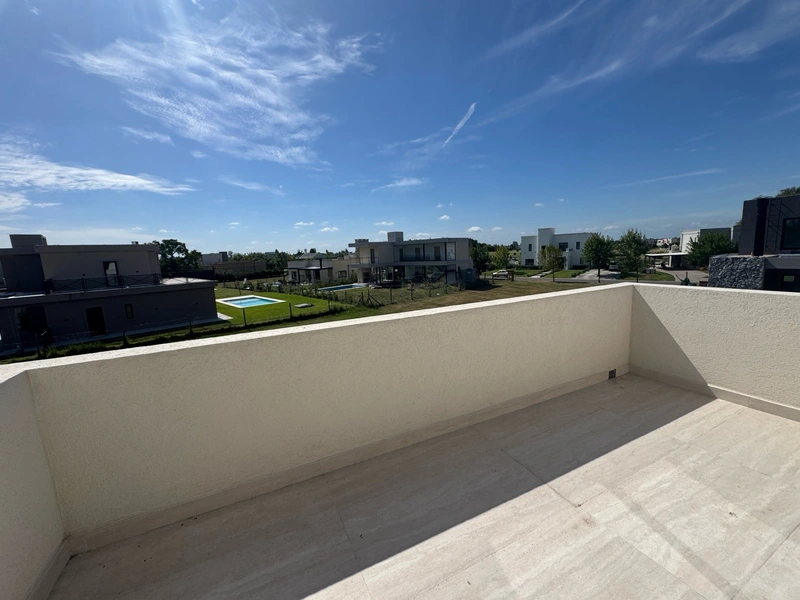 Casa de cinco ambientes desarrollada en dos plantas, ubicada dentro del barrio Haras Santa María. En planta baja cuenta con un hall de recepción que conduce a un amplio living comedor con salida directa a la galería y al jardín, generando una excelente integración entre los espacios interiores y exteriores. La cocina se encuentra integrada y equipada con isla central, aportando funcionalidad y amplitud al ambiente. En esta planta también se dispone de un toilette de recepción y un escritorio ideal para home office o espacio de estudio. En la planta alta se desarrolla la suite principal de generosas dimensiones, que cuenta con vestidor y baño completo. Además, la propiedad dispone de dos dormitorios adicionales que comparten un baño completo. En el exterior se destaca la galería con vista al jardín, acompañada por un baño de pileta, creando un espacio ideal para disfrutar al aire libre y recibir invitados. La casa cuenta con calefacción por piso radiante, aberturas con doble vidrio hermético (DVH) y preinstalación de aire acondicionado en todos los ambientes. Haras Santa María se desarrolla sobre 360 hectáreas naturales y está compuesto por 1.500 lotes distribuidos en diez barrios internos. Su diseño urbanístico fue realizado por el estudio Robirosa – Beccar Varela – Pasinato Arquitectos, con paisajismo a cargo del estudio Diharce. El barrio ofrece una amplia infraestructura deportiva y social. Cuenta con una cancha de golf diseñada por el estudio Caprile & Capdepont, actividades ecuestres con clases de equitación, competencias y alquiler de caballos. Dispone además de un clubhouse del golf con restaurante, spa y pileta cubierta climatizada para nado. El clubhouse familiar, de 2.300 m², ofrece dos piletas, 17 canchas de tenis de polvo de ladrillo, dos canchas de fútbol 11 y dos canchas de fútbol 7, gimnasio, microcine con pantalla gigante y sistema de sonido, playroom y SUM. Dentro del barrio también se encuentra el colegio bilingüe St Luke’s. Gracias por elegirnos estamos para ayudarte a encontrar tu nuevo hogar !