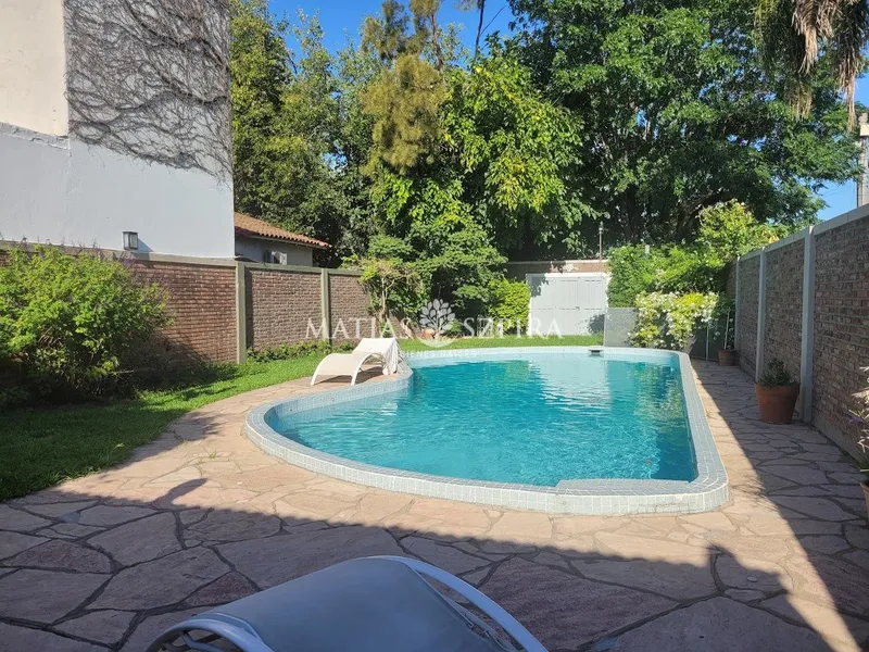 Venta de Casa 5 AMBIENTES en Castelar, Morón Hermoso chalet en inmejorable ubicación residencial de Castelar Norte, cercano a la estación, compuesto por dos lotes con salida a dos calles. Desarrollado en dos plantas, en planta baja posee amplio living con hogar a gas, comedor diario, cocina comedor con hogar a leña, dos habitaciones con placard y baño completo. En planta alta posee dos habitaciones y baño completo. En el exterior cuenta con quincho vidriado con cocina completa, parrilla techada, lavadero, cuarto utilero, baño completo, terraza, piscina, y parque libre. Garage techado para dos autos con portón automatizado. Detalles de categoría. Excelente calidad constructiva y estado. ESCUCHA OFERTAS.- Superficie total: 520 mts2 (superficie cubierta: 290 mts2).-SUCURSAL RESPONSABLE: PARQUE LELOIR