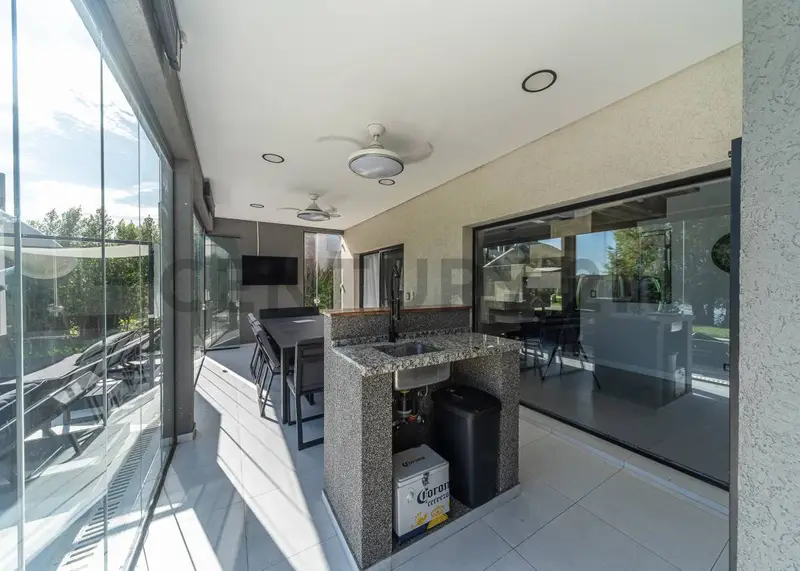 Casa Moderna de Diseño Amoblada en Cantón Norte. En Venta y Alquiler. -5 ambientes -Metros Cubiertos: 260 -Metros Semicubiertos: 60 -Metros Descubiertos: 24 -Se ingresa por una gran puerta pivotante de madera con cerradura digital. En Planta Baja: - Se encuentra el Living- Comedor totalmente equipado con materiales y mobiliario de primera línea. -Primer dormitorio (actualmente Gimnasio) totalmente equipado con baño completo revestido de grandes dimensiones. -Cocina y comedor diario con mesada de Silestone, lavavajillas Ariston y Heladera doble de acero inoxidable. -Lavadero independiente equipado. -Galería: Parrilla completa con mesa exterior de Dekton y cerramientos plegables de vidrio. -Impresionante piscina con borde infinito revestida / solárium atérmico con Camastro de Diseño y reposeras. Incluye un tobogán acuático hecho a pedido. -Muelle de grandes dimensiones con vista amplia a la Laguna. -Cochera Doble techada. En Planta Alta: -Accedemos al hall distribuidor a través de una escalera revestida, con vista al jardín y a un gran balcón aterrazado. -Ala derecha: Se encuentra el Dormitorio Principal, el vestidor y un gran baño compartimentado, con Hidromasaje y ducha separada completamente revestido. -Ala izquierda: Tercer dormitorio con baño completo compartimentado, se comparte con un cuarto dormitorio de ubicación central. -Ambas plantas poseen Piso Radiante. INCLUYE: -Aires Acondicionados: 5 unidades -Cortinas dobles en Planta Alta, Roller en Planta baja -Vidrios Plegables (Roller up) de cerramiento en Galería -Muelle -Cámaras de seguridad -Mesa exterior de Dekton marca Mike -Muebles de exterior marca Mike (camastro y reposeras) -Gym completo con aparatos, mancuernas y cinta de correr -Espejos retroiluminados de todos los baños -4 Smart 50’ Samsung cristal -Sommier Linea Manhattan + sommier Chicago -Living-comedor complete -Riego x goteo y por aspersores -Tobogán acuático Rotomundo -Heladera doble de acero inoxidable - Led 47 pulgadas + mesa de cocina y sillas -Acessorios deco -Ventiladores de galería + paneles de calefacción -Luces exteriores de jardín -Dormitorio completo + mobiliario - Tele 85 ‘ lavavajillas + lavarropa 5800 REQUISITOS: -6 meses de Depósito en garantía El Barrio El Cantón es uno de los desarrollos inmobiliarios más grandes y completos de la zona norte del Gran Buenos Aires, ubicado en Ingeniero Maschwitz, dentro del partido de Escobar. A continuación tenés una descripción bien completa y clara: El Cantón es un barrio privado (country) de gran escala, pensado como una “mini ciudad” residencial con servicios propios, seguridad y contacto con la naturaleza. • Superficie total: aprox. 500 hectáreas • Cantidad de lotes: más de 2000 terrenos • Tamaño promedio de lote: ~800 m² Está ubicado cerca del km 44–45 de la Panamericana Ramal Escobar, con accesos directos desde autopista. Estructura del barrio El Cantón no es un solo barrio, sino un mega-emprendimiento dividido en 4 barrios internos: • Norte • Islas • Golf • Puerto Todos están conectados por una vía interna rápida. Cada uno funciona casi como un barrio independiente, con su propio estilo y características. Característica principal: lagunas Una de las cosas que lo hace tan buscado es su diseño: • 65% de los lotes dan a lagunas internas • Gran presencia de agua, vegetación y fauna • Ambiente tipo “resort natural” Esto genera vistas abiertas, tranquilidad y más privacidad. Deportes y recreación • Canchas de fútbol, tenis y vóley • Piscinas • Áreas para niños • Cancha de golf (en el sector Golf) Infraestructura • Club House en cada sector • SUM (salón de usos múltiples) • Espacios verdes amplios Seguridad • Seguridad privada • Control de accesos • Vigilancia 24 horas Ubicación estratégica Aunque es un barrio cerrado, está cerca de: • Panamericana (rápido acceso a CABA) • Centros comerciales de
