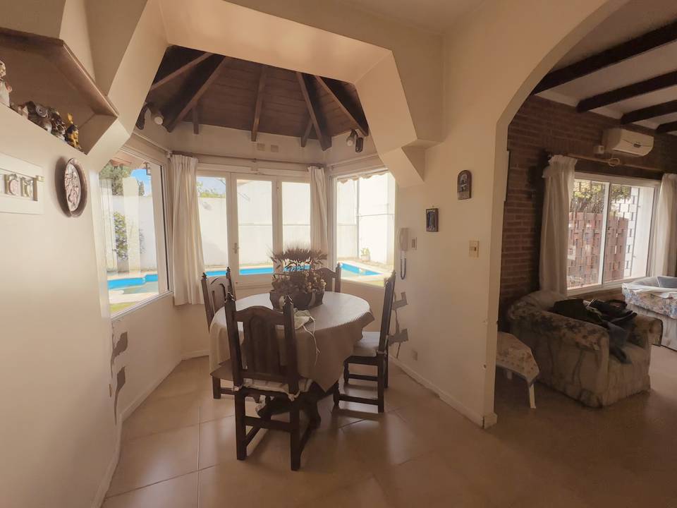 No busques mas la casa de tus sueños te espera... La propiedad consta con Living comedor amplio con muchisimas luz y tranquilidad, cocina con comedor diario, 2 Dormitorios en planta baja con placard, un entrepiso que puede adecuarse como dormitorio o escritorio con baño y amplio ventanal a uno de los patios internos. 3 Baños, quincho cubierto con cerramiento de vidrio y cocina equipada con gas, parrilla y mucho lugar para disfrutar en familia. Pileta y jardín con mucho verde y sol para los días de verano. Por último, y no menos importante, un local comercial a la calle 100% independiente. Te invito a conocer la casa de tus sueños, escribinos...