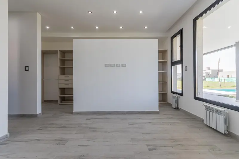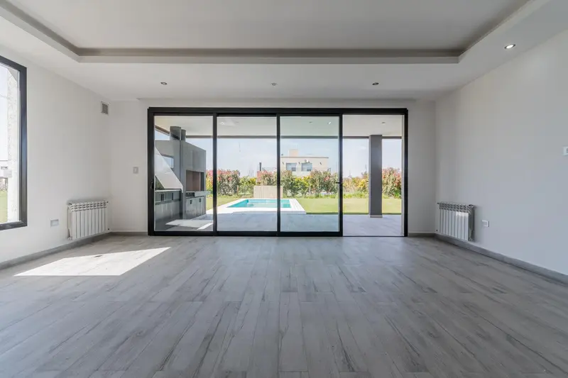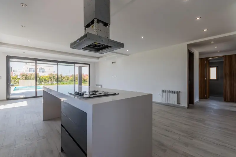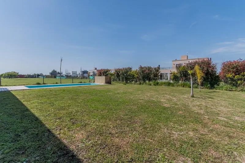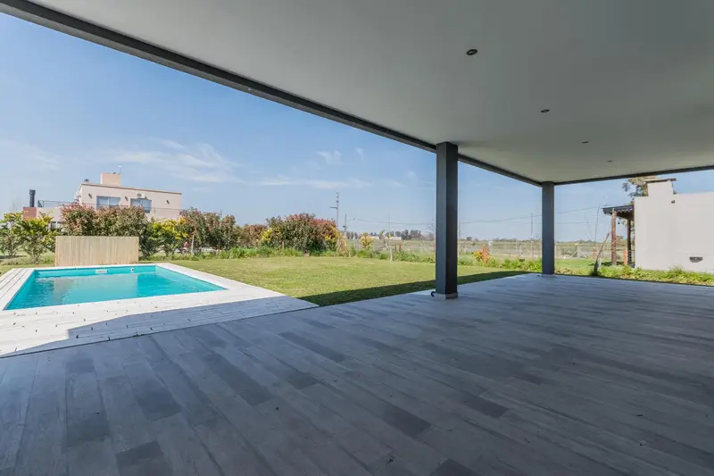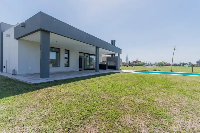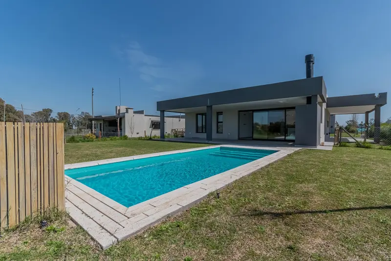 Casa en VENTA en Barrio Santo Domingo - Canning Desarrollada en una sola planta, se ingresa por el Living-Comedor, con vista a la pileta y jardintrasero. Cocina integrada con muebles laqueados y mesada e isla hecha de Silestone integramente, por la misma se accede al lavadero con mesada de marmol y salida a la galería y acceso a la piscina. Volviendo al Liivng - Comedor ingresamos a los tres dormitorios de los cuales dos comparten un baño completo y la habitación principal cuenta con baño en suite y vestidor. Detalles de categoría resaltan en la construcción de esta propiedad, revestimientos en madera, puertas camufladas en pasillo distribuidor, carpintería laqueada en la cocina, mesada e isla de Silestone, puertas enchapadas en madera. La propiedad cuenta con calefacción por radiadores, todas las aberturas son de doble vidrio hermético (DVH) primera calidad PVC.Estacionamiento cubierto para un vehículo.