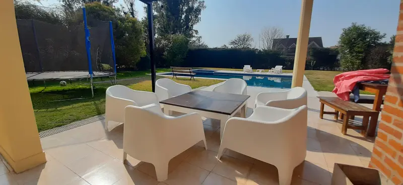 Muy linda casa en venta en el Barrio Cerrado Santa Maria de los Olivos. Planta baja cuenta con un amplio living y comedor. Una habitación con su baño, cuarto * amplio, y un toilette. Cocina muy cómoda con comedor de diario. Cocina lavadero, comedor y living con doble altura. Lavadero con salida al exterior. Planta alta: dos habitaciones amplias y la habitación principal en suite con vestidor y balcón al jardín. Pileta de 10 x 5 mts más hidromasaje de 3 x 2 mts y solárium húmedo de 3 x 2 mts con equipo de filtrado automático e instalación de cañerías para sistema de calefacción para climatizarla. Parrilla. Horno de hierro embutido. Iluminación automática exterior por control horario Dos tanques de aguas. Caldera dual para agua caliente en planta alta y calefacción. Agua caliente independiente en planta baja por calefón Riego automático con con bomba sumergible propia. Calefacción central con caldera con radiadores. Garage para dos auto cubierto y cerrado. Portones de garage automáticos Alarma instalada con aviso al celular ante cualquier evento.