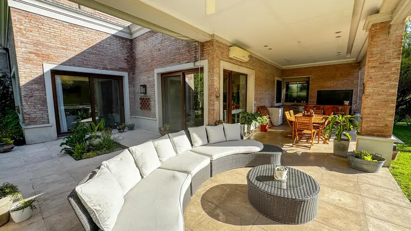 Casa en Venta en Country Pilar del Lago – Lote de 800 m²Ubicada en uno de los barrios más exclusivos de Pilar, esta propiedad combina diseño, confort y materiales de primera calidad en un entorno seguro y rodeado de naturaleza. Planta Baja:Suite principal con vestidor privado y baño completo.Segundo dormitorio amplio y luminoso.Cocina moderna con gran capacidad de guardado y terminaciones de alto nivel.Living comedor con vistas al jardín y salida directa al exterior, generando un ambiente cálido e integrado.Lavadero independiente y sala de despensa para optimizar el orden y la practicidad. Planta Alta:Tercer dormitorio con baño *de estar integrada, ideal como espacio de descanso, lectura o escritorio. Exteriores:Galería techada con cocina, quincho, parrilla y bacha, perfecta para reuniones al aire libre.Piscina climatizada, rodeada de jardín parquizado. Detalles y Terminaciones:Calefacción por losa radiante en toda la casa.Pisos de roble de Eslavonia (Patagonia Flooring).Aberturas con doble vidrio hermético (DVH) para un excelente aislamiento térmico y acústico.Mesadas de mármol de Carrara en cocina, baños y lavadero, aportando distinción y elegancia. Bayugar Negocios Inmobiliarios - María Dolores Bayugar - CMPSI Mat Nº *Las imágenes del inmueble pueden haber sido editadas mediante herramientas de inteligencia artificial con fines ilustrativos y de mejora visual, pudiendo incorporarse ambientaciones digitales o ajustes estéticos sobre elementos no estructurales. Estas modificaciones no implican alteración de la superficie, dimensiones, distribución ni características esenciales reales del inmueble ofrecido, las cuales podrán verificarse mediante visita presencial.