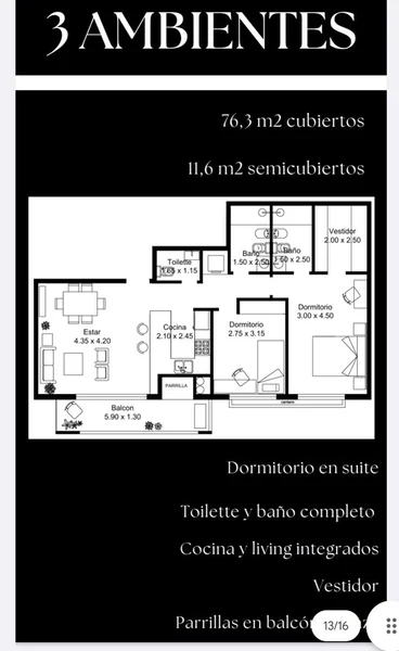 Superficie total 62m²