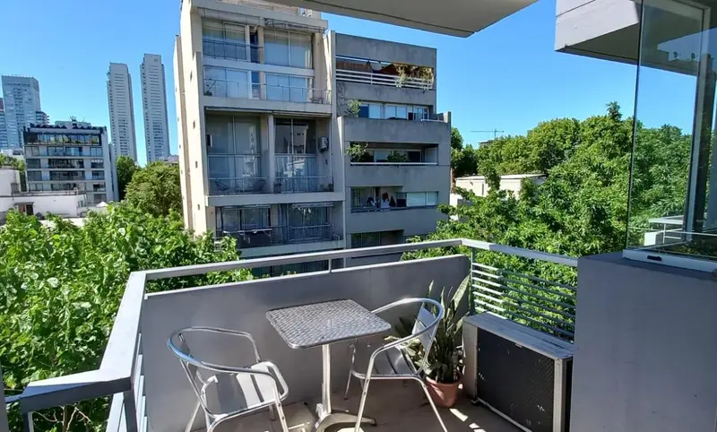 Excelente departamento totalmente equipado de dos ambientes con COCHERA FIJA. Con un amplio y bello balcón. Todo muy luminoso. Cocina con lavarropas y barra desayunadora. Vista luminosa al frente. Parrilla y SUM abierto en la terraza. Emplazado en una de las zonas mas bonitas de Palermo Hollywood. Sobre Carranza y a metros de Nicaragua, es una zona residencia y comercial con amplia y contemporánea oferta gastronómica, con muy buenas opciones en cercanía y en una cuadra muy tranquila. A pocas cuadras de Av. Santa Fe, con muchos medios de transporte, subte D y tren Mitre. Alquiler vivienda: Se abonan aporte servicios y expensas Alquiler temporario incluye todos los servicios menos la luz. Ley 5115: "no accesible". ----------------------- *-------------------------