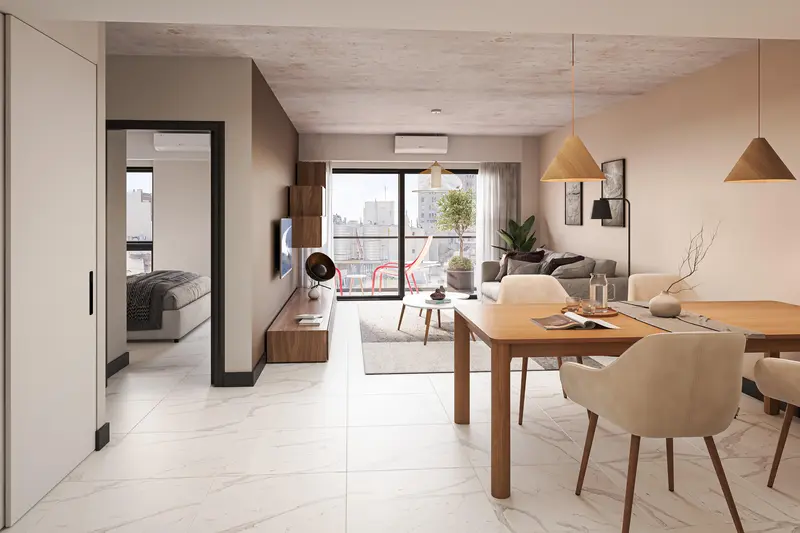 DONDE EL DISEÑO SE CONVIERTE EN EXPERIENCIA DE VIDA En el corazón vibrante de Almagro, se redefine el estándar residencial con un proyecto que combina arquitectura moderna, materiales nobles y espacios pensados para disfrutar. Cada unidad está diseñada para privilegiar la luz natural, la amplitud y la calidad constructiva, en una esquina estratégica de la ciudad. El edificio ofrece 17 unidades de 2 ambientes, todas al frente con balcón o terraza. Se completa con 2 locales comerciales en planta baja, SUM con parrilla y terraza verde, y espacio de guarda bicicletas con conexión eléctrica para carga. Ubicación estratégica y conectividad inmejorable: A pasos de Av. Corrientes, del subte línea B (estación Ángel Gallardo) y de Av. Estado de Israel, el proyecto se encuentra en un entorno que combina vida urbana, acceso inmediato a transporte, comercios, universidades, cultura y espacios verdes. A solo 500 metros del Parque Centenario y muy cerca de los polos gastronómicos y culturales más activos de Buenos Aires. DEL EDIFICIO: - Portero eléctrico digital. - Diseño moderno y funcional. - Departamentos de 2 ambientes desde 45 M2. - Ambientes cómodos, muy luminosos y ventilados. - Gran calidad constructiva y detalles de terminaciones. - Amplios ventanales con carpintería de aluminio y vidrios DVH. - Espacio guarda bicicletas con conexión eléctrica para carga. - SUM con terraza y parrilla. DE LOS DEPARTAMENTOS: - Balcón o terraza propia. - Cerradura digital de última generación. - Pisos revestidos en porcelanato de primera calidad. - Aire acondicionado split frío* de primera marca instalado. - Mesadas de cocina en granito, Silestone o similar. - Revestimientos baños de porcelanato primera calidad. - Artefactos sanitarios y griferías de primera línea. - Muebles de cocina completos con frentes lisos y tiradores ocultos. - Piletas de cocina de acero inoxidable (tipo Johnson o similar). - Placares con interiores completos y puertas corredizas. - Agua caliente individual por termotanque eléctrico. - Instalación prevista para lavarropas. - Anafe y horno eléctrico + campana de acero inoxidable. Con una calidad de vida excepcional y un diseño que inspira, este desarrollo en Almagro ofrece una oportunidad única para quienes buscan un hogar moderno en un entorno dinámico. Entrega Abril * PIDA TASACIÓN: Efectuada por profesionales, que analizan permanentemente el desenvolvimiento del mercado. Confíe su patrimonio en una empresa sólida con respaldo y prestigio. Confíe en el Líder. * PROPIEDADES. Se deja constancia que los m2 son aproximados, al igual que las medidas parciales y el valor consignado de las expensas mensuales (en caso que corresponda pago de expensas) y las características están sujetos a verificación y/o ajustes, el precio del inmueble puede ser modificado sin previo aviso. En el caso de tratarse de un inmueble en construcción los detalles de terminación y la fecha de entrega están sujetos a revisión. Fotos de carácter no contractual. Las unidades publicadas están sujetas a disponibilidad. * Propiedades srl con domicilio en Avda. Corrientes 4666 actúa solamente en carácter de comercializadora de los inmuebles ofrecidos. En caso de tratarse de un terreno, la información de m2 construibles y plusvalía es orientativa, debiendo ser constatada por el interesado. Inmueble no accesible para personas con discapacidad física LEY 5115. CUCICBA matrícula 37. CMCPSI matrícula 6003. Únicamente en el caso de tratarse de alquiler de vivienda familiar, rige lo indicado en la LEY 5859. Venta supeditada al cumplimiento por parte del propietario de los requisitos de la resolución general Nº 2371 de la AFIP (pedido de COTI).