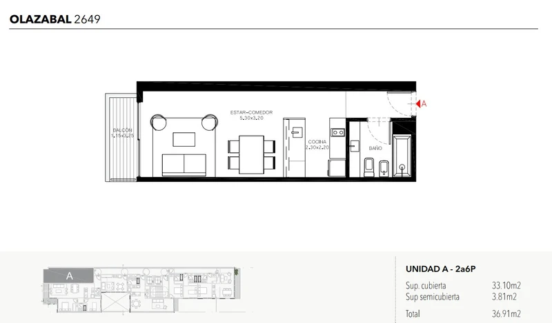 Superficie total 37m²