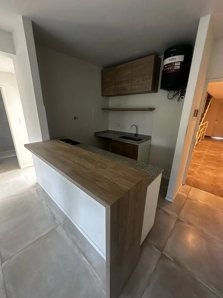Imagina un departamento moderno de tres ambientes, situado en una zona residencial tranquila y agradable. Al entrar, te recibe un luminoso salón que combina la sala de estar y el comedor, decorado con un estilo contemporáneo y elegante. Grandes ventanales permiten que la luz natural inunde el espacio, creando un ambiente cálido y acogedor. La cocina, de diseño abierto, está equipada con muebles de cocina de líneas limpias, electrodomésticos de acero inoxidable y una barra desayunadora que invita a disfrutar de comidas rápidas. El espacio es funcional y estéticamente atractivo, perfecto para aquellos que disfrutan cocinar. El departamento cuenta con dos dormitorios. El principal es amplio y luminoso, con un armario empotrado y una decoración moderna que invita al descanso. El segundo dormitorio es ideal para niños, huéspedes o como oficina, manteniendo el mismo estilo contemporáneo. Uno de los mayores atractivos de este departamento es su terraza privada, que incluye un quincho equipado con parrilla. Este espacio al aire libre es perfecto para disfrutar de reuniones familiares o con amigos, con una mesa y sillas cómodas que permiten disfrutar de comidas al aire libre. La terraza está rodeada de vegetación, creando un ambiente íntimo y relajante. En resumen, este departamento combina el confort moderno con la funcionalidad, ofreciendo un estilo de vida ideal en una zona residencial apacible. " Abrimos Puertas"