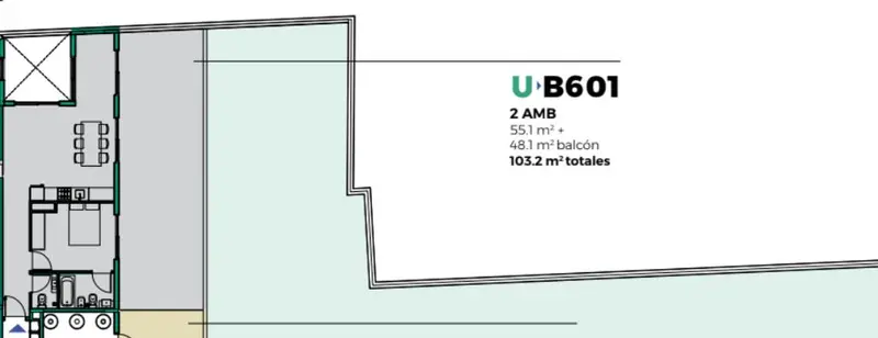 ENTREGA DICIEMBRE 2026 Sobre una parcela de tierra excepcional por sus dimensiones, con más de 110 metros de largo y 2300 m2 de superficie GREEN-LINE es un complejo residencial que conjuga las características de departamentos modernos con las virtudes de un espacio verde exclusivo. Un lugar en donde sus habitantes puedan sentir la comodidad de vivir cerca de todo con un entorno natural y tranquilo, alejado del bullicio. Este complejo, de características únicas en el plano de la manzana, se compone de 3 edificios, con unidades de 1 a 4 ambientes, con un hermoso camino verde y puentes de conexión. Sus posibilidades de residencia, lo convierten en una oportunidad excelente tanto para vivir como para invertir. Departamento 2 ambientes de 103m² totales, con posibilidades de residencia permanente, temporal y usos múltiples lo convierten en una oportunidad excelente de inversión. Contará con living comedor con cocina integrada y salida a una terraza propia. Dormitorio en suite, y un toilette de recepción. Además, cuenta con espacios comunes como piscina, SUM, gimnasio, laundry y solarium. Se destaca por contar con puesto de seguridad y bajas expensas. TERMINACIONES DE LAS UNIDADES Carpintería de madera Puertas de acceso a las unidades en madera con RESISTENCIA AL FUEGO FR30. Puertas placa interiores para pintar. Marcos interiores en chapa doblada para pintar. Carpintería exterior Estar y dormitorios: Carpinterías de ALUMINIO En baños: Carpinterías de ALUMINIO Pisos de Estar - Comedor y Dormitorios Pisos vinílicos entablonados símil madera o similar Zócalo de MDF para pintar Baños Piso y paredes de porcelanato o similar Griferías FV o similar Artefactos FERRUM, ROCA Mónaco o similar Inodoro con mochila FERRUM, ROCA Mónaco o similar Cocinas Mesada y zócalo de granito o similar Frente sobremesada Mueble bajo mesada Pileta en acero inoxidable marca MI PILETA, Johnson o similar Anafe y horno eléctrico marca DOMEC o similar Grifería FV o similar Balcones Pisos revestidos Cielorrasos Estar y dormitorios: armado con placa de roca de yeso Baños y sector cocinas: armado con placa de roca de yeso Sistemas de instalaciones Preinstalación de aire acondicionado (equipos e instalación no incluidos) Instalación Sanitaria: Agua Caliente por Termotanques o Calderas Centrales. AMENITIES Piscina Solárium Parrillas SUM Gimnasio Laundry IBU70928 AP* Martillero y Corredor inmobiliario: DI FULVIO ROSA ANDREA Matricula CUCICBA 2755 AVISO LEGAL: Los datos fueron proporcionados por el propietario y pueden no estar actualizados a la hora de la visualización de este aviso por lo cual pueden arrojar inexactitudes y discordancias con las que surgen de las facturas, títulos y planos legales del *cumplimiento de las leyes vigentes que regulan el corretaje inmobiliario, Ley Nacional 25.028, Ley 22.802 de Lealtad Comercial, Ley 24.240 de Defensa al Consumidor, las normas del Código Civil y Comercial de la Nación y Constitucionales, los agentes* NO ejercen el corretaje inmobiliario. Todas las operaciones inmobiliarias son objeto de intermediación y conclusión por parte de un corredor público inmobiliario colegiados, cuyos datos se exhiben en la presente publicación: Di Fulvio Rosa Andrea, matrícula CUCICBA 2755. La presente publicación describe las características esenciales del inmueble, debiéndose consultar al corredor público inmobiliario responsable de la operación por la eventual actualización de las medidas, descripciones arquitectónicas y funcionales, valores de expensas, servicios, impuestos, precios y demás información, cuyos valores son aproximados.