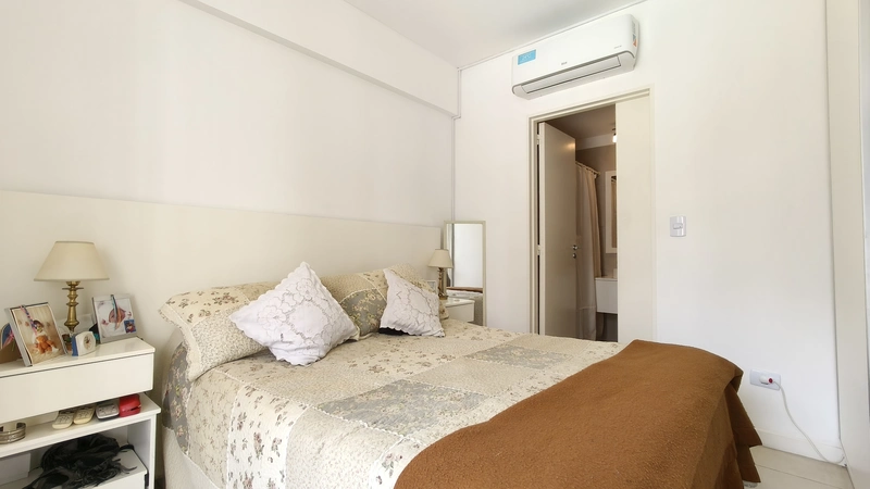 Excelente ubicación. Departamento con entrada exclusiva de 2 departamentos por ascensor Se accede directamente al living comedor, con cocina integrada y barra desayunador Posee toilette de bienvenida y el living a lo largo con un gran mueble para la parte de entretenimiento, por el cual a continuacion se puede acceder a la habitacion con vestidor y baño en suite. Posee cocina electrica y calefaccion central, con regulacion individual. Equipos de A/A en los ambientes. Balcon con vista al contrafrente y gran pulmon central y vista a la piscina del edificio. No posee cochera. En planta Alta posee un pequeño gimnasio y un sum para reuniones En Planta bajo se accede a la piscina Digno de visitar y ver.