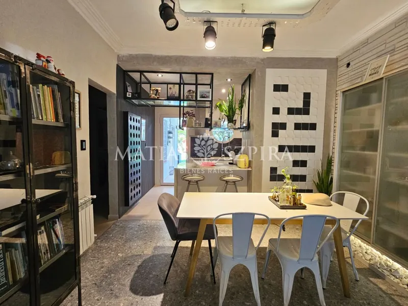 Venta de Casa tipo ph 3 Ambientes en Castelar Norte, Castelar Propiedad en una única planta de excelente calidad constructiva, reciclada, donde se fusionan la estética original con detalles innovadores, ubicada en una de las zonas más residenciales y tranquilas de Castelar Norte, a pocas cuadras de las principales avenidas, plazas y centros comerciales. Posee Living comedor con cocina semi integrada y barra desayunadora de gran tamaño, mueble bajo mesada - Baño completo - Dormitorio junior con placard - Dormitorio en suite con vestidor - Lavadero cubierto - Galería semi cubierta - Terraza - Jardín - Piscina - Cuarto de guardado - Cochera descubierta con portón automático.Calefacción por radiadores -Alarma y puerta de ingreso *CREDITO BANCARIOSUCURSAL RESPONSABLE LELOIRASESORA DE VENTAS *.