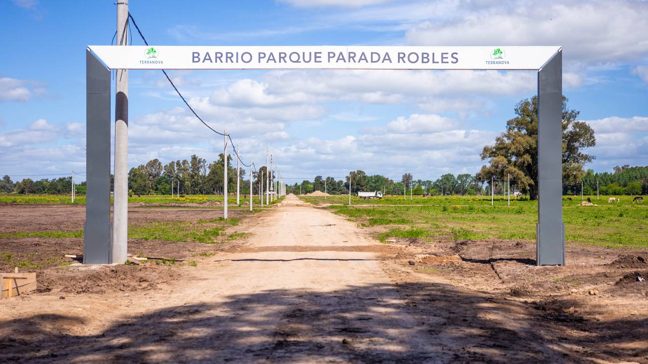 BARRIO PARQUE ROBLES - EXALTACIÓN DE LA CRUZ Es un barrio abierto de 214 lotes entre 1500 a 2200 m2, se encuentra ubicado en Parada Robles, partido de Exaltación de La Cruz a muy pocas cuadras de Panamericana, en un entorno residencial y tranquilo. Quedan 6 Lotes disponibles! CARACTERÍSTICAS DEL BARRIO - 0% de Anticipo. - Precios de referencia desde USD 41.600 - Posesión Inmediata - Sin expensas. - Sin reglamento de construcción. - Financiamiento. ACCESO Y ALREDEDORES El barrio abierto a tan sólo 71 km de Capital, 11 km de Capilla del Señor y 25 km de Pilar. Está ubicado a seis cuadras del centro comercial de Parada Robles, un pueblo tranquilo, donde podrás encontrar un jardín maternal, un club, una capilla y una sala de primeros auxilios. Excelente ubicación a pocos minutos del transporte público (Estación de tren Mitre). INFRAESTRUCTURA -Calles con fresado -Electricidad Domiciliaria -Luminaria Pública de Calle Tipo LED -Reglamento de Construcción: NO FINANCIAMIENTO Anticipo desde 30% y hasta 84 cuotas fijas en bolsas de cemento, en pesos. Compra de contado: 5% de bonificación sobre precio de lista.