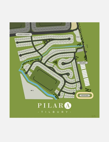 Excelente lote cercano a la cancha de Polo , en Barrio Tilbury . Pilará es un emprendimiento que lleva más de 15 años de desarrollo, con seis comunidades consolidadas. Es un proyecto desplegado sobre un campo de una geografía entrañable a minutos del centro de Pilar. Su diseño urbano, realizado por el estudio Robirosa, y sus jardines y paisajismo diseñado por el estudio Thays lo convierten en un lugar único. Más de 600 familias disfrutan hoy de Pilará, de su infraestructura de vanguardia y calidad, con paisajes abiertos, bosques, 14 canchas de tenis, la primera cancha de golf diseñada personalmente por Jack Nicklaus en Latinoamérica, canchas de polo, canchas de fútbol y mucho más.