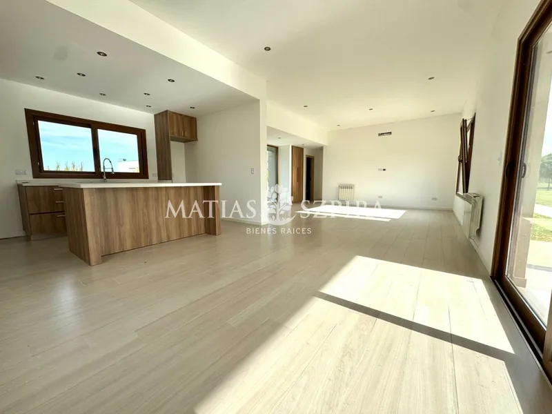 Venta de Casa 4 Ambientes en Comarcas de Luján San Roque, Luján Casa desarrollada en una sola planta, sobre lote de 2.000 m², con 154 m² cubiertos, ideal para quienes buscan comodidad, verde y buena distribución. Cuenta con living comedor, cocina completa y lavadero. Luego, cuenta con tres dormitorios, de los cuales uno en suite con vestidor, dos baños y baulera.Tiene salida directa a galería cubierta con parrilla y jardín con *frente dispone de dos cocheras cubiertas. Datos clave:3 dormitorios 2 baños Lavadero Baulera 4 ambientes 2.000 m² de lote 154 m² cubiertos Galería con parrilla Piscina 2 cocheras cubiertas