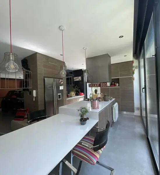 Venta de casa 4 ambientes. Parque Leloir "Barrio Cerrado Don Caggiano" Ubicado a 300mts de Acceso Oeste. PLANTA BAJA: Amplia cocina comedor y liiving integrado. Toilette. Garage para dos autos integrado a los demas ambientes. PLANTA ALTA: Amplio espacio de ciruclacion. Dormitorio principal en suite con vestidor. Dos dormitorios con placard. Baño completo. En el exterior: Parque libre con Piscina ( revestimiento de venecitas). Aberturas de aluminio DVH. Pisos de cemento alisado en planta baja y pisos de madera de roble en planta alta. mesada de Silestone en cocina. Calefaccion por radiadores. Aire acondicionado en todos los ambientes. Riego por aspercion.