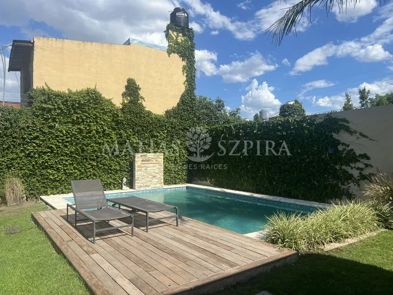 Venta de Casa 5 Ambientes en Castelar, Morón Excelente propiedad con todos los ambientes principales en planta baja.Amplio y luminoso living-comedor, cocina-comedor semi integrada, tres cómodos dormitorios y baño principal de grandes *casa ofrece entrada para auto, garage cubierto, lavadero con posibilidad de pasante y un gran parque con pileta climatizada, ideal para disfrutar todo el año. Completa el exterior una parrilla, horno de barro y un baño completo, con opción de adaptarlo como baño en suite.Planta alta: espacioso playroom, hoy utilizado como dormitorio y *propiedad funcional, cómoda y pensada para disfrutar. ¡Lista para mudarte!SUCURSAL RESPONSABLE LELOIRASESORA *