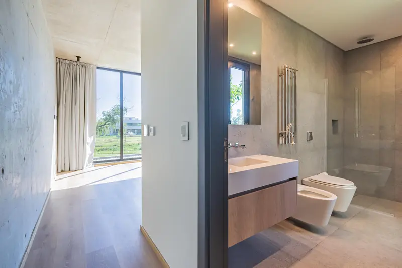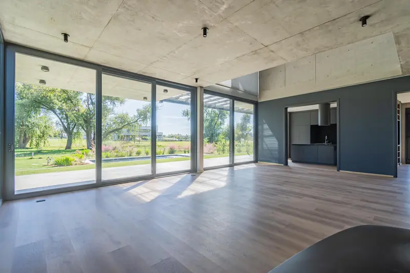 Casa “El Arroyo” Está situada en el barrio cerrado Azzurra Tortugas, donde la naturaleza es protagonista y juega un rol muy importante en la casa en particular. Ubicada en un lote de 788 metros cuadrados sobre el arroyo Garín, la casa tiene patios internos y canteros, junto con un jardín diseñado por el Estudio Thays que dota al inmueble de un paisajismo muy especial, integrado con el del resto del barrio que también fue proyectado por dicho estudio. El lote con vistas a la reserva natural que corre a lo largo del arroyo, cuenta con la particularidad de tener una gran apertura, ya que hay 75 metros desde su límite hasta los lotes que se encuentran en frente, del otro lado del espejo de agua. El diseño y la estética hacen que la casa sea única arquitectónicamente. Son parámetros, presentes en todos sus rincones, que van de la mano con el funcionamiento y la comodidad para lograr de esta manera, una casa que no escatima en su aspecto artístico, pero que, a su vez, ofrece el mayor confort para quien la habita. Acceso:En el acceso principal, la premisa fue crear un espacio que brinde privacidad pero que también revele el interior de la casa sin comprometer la intimidad al abrir la puerta. La escalera y la disposición del acceso principal actúan como una cortina translúcida, proporcionando visiones del interior de la casa sin sacrificar la privacidad. Además, nos recibe un lecho de vegetación interior que se integra con el paisaje exterior, fortaleciendo la conexión entre el adentro y el afuera, así como la armonía de la casa con la naturaleza. Living-Comedor:El diseño del living-comedor fue concebido como un amplio espacio integrado, con vistas panorámicas al jardín y a la reserva natural que bordea el arroyo. Se puede abrir las ventanas al exterior para fusionar el interior de la casa con el entorno. Además, cuenta con doble altura y un balcón interno en el centro, lo que dota al mismo de importancia y magnitud y permite que ingrese más luz desde el exterior, dando gran luminosidad al espacio. También, es posible integrar la cocina que se encuentra separada por grandes puertas corredizas para facilitar la unificación de los espacios y sus funciones de acuerdo con el deseo del usuario.Ejemplifica uno de los principales conceptos de la casa: la versatilidad y adaptabilidad de los espacios para una variedad de usos y funciones, según el diseño establecido. Cocina:La cocina fue diseñada como un elemento decorativo en el que los muebles panelables ocultan los electrodomésticos, fomentando la simplicidad y el diseño minimalista que permiten su integración con otros espacios de la casa sin sacrificar la estética y el diseño. Además, fue concebida en conjunto con el cuarto de televisión para ofrecer la posibilidad de mantener a los niños a la vista durante las diferentes tareas culinarias. La cocina cuenta con un acceso independiente resguardado por un semicubierto que conduce al usuario desde sus vehículos. Tiene acceso directo a la galería y a la parrilla a través de un recorrido circular y continuo, lo que refuerza la funcionalidad y simplifica las tareas según su uso. Cuarto de huéspedes*:Este espacio fue concebido para ofrecer versatilidad en su funcionamiento. Puede funcionar como dormitorio o como escritorio. Posee un acceso independiente que permite un funcionamiento autónomo respecto del resto de la casa, al mismo tiempo que cuenta con conexión inmediata al baño con ducha incorporada, lo que lo convierte en un dormitorio en suite. Llegada de escalera:Al ascender por la escalera, nos encontramos con un espacio abierto con múltiples posibilidades de uso. Un patio lleno de vegetación ordena la circulación y promueve la iluminación natural durante todo el año. Los pasillos ofrecen vistas al exterior y nos guían hacia las diferentes habitaciones en suite, creando una sensación de privacidad y autonomía gracias a los espacios vacíos y áreas verde