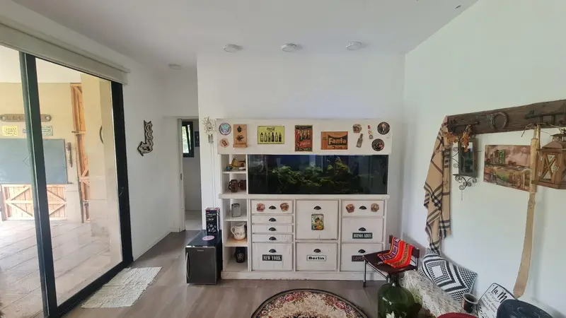 Venta de casa 4 ambientes. Barrio Santa Ana , Francisco Alvarez. Desarrollada en una sola planta. -Cocina comedor integrada . Living recibidor. Toilette de recepcion. -Dormitorio principal en suite con vestidor. -Dos dormitorios, principal en suite con vestidor. En el exterior: Parque libre, Piscina (3x7) con playa humeda de 2 metros. Riego automatico Quincho con parrilla.