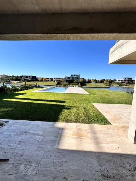 Excelente casa en tres plantas a la laguna en venta en el exclusivo barrio Virazon de *. Moderna, luminosa, de gran calidad de construcción. Planta Baja: Cochera semicubierta para 2 vehículos; living de doble altura con comedor; amplia cocina con isla; habitación de huesped o escritorio con baño; toilet; lavadero. Primera Alta: Dos dormitorios en suite con vestidores, tercer dormitorio en suite con placard, la master suite cuenta con un amplio vestidor y balcón. Segunda Planta: Gimnasio o play con terraza, espacio de guardado Exterior: Gran galería con parrilla, mesada con pileta y barra; espacio para living; baño exterior; gran jardín con riego por aspersión; piscina de 36 mts2 mts con solarium; riego por aspersión. Caracteristicas: Pisos de mármol travertino en interior y exterior; Pileta revestida en travertino; Calefacción por losa radiante y equipos VRV (calefacción central sectorizada).\r\nNOTA: Se deja constancia que las medidas, superficies, m2 y proporciones consignadas son aproximadas y pueden variar respecto del titulo de propiedad respectivo, al igual que las medidas parciales y/o de los ambientes están sujetas a verificación y/o ajuste sin comprometer a nuestra empresa. El valor indicado de expensas, si las hubiere, esta sujeto a variación. El precio del inmueble puede ser modificado sin previo aviso. Fotos de carácter no contractual. Todas las operaciones están a cargo del Martillera Josefina del Pino CMCPCI 7002 - CUCICBA 7013