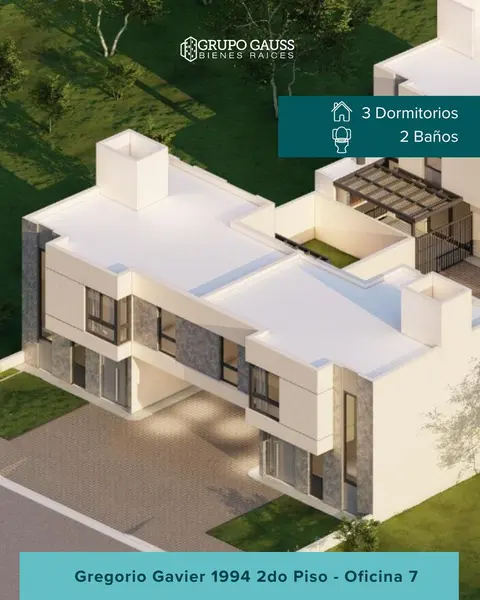 Dúplex en Pozo – 3 Dormitorios – Docta Parque | Housing Entrega inicial + saldo en cuotas. Financiación *el pago inicial accedés a la posesión inmediata del lote. Distribución Planta Baja: •Living–comedor amplio •Cocina integrada •Baño social •Galería con asador •Patio propio •Cochera Planta Alta: •3 dormitorios con placard (algunas unidades incluyen baño en suite) •Baño completo Ambientes luminosos y diseño funcional pensado para el confort diario. Detalles Constructivos: •Muros con bloques cerámicos portantes de excelente calidad •Interiores terminados con base de concreto castigado y acabado en yeso •Carpintería exterior de aluminio Módena corte 90 con DVH •Griferías y artefactos sanitarios de primeras marcas •Preinstalación para radiadores en dormitorios, escalera, living y baño (no incluye caldera ni radiadores) •Patio y áreas verdes entregados nivelados (sin parquización) •Amoblamientos de cocina, placares y muebles de baño en melamina sobre MDF (color a definir) Consultanos sin compromisoTenemos múltiples alternativas en Docta: unidades de 2 y 3 dormitorios, en distintas zonas y con diferentes fechas de entrega. GRUPO GAUSSBienes RaícesCPI: 4689 Tel: * AVISO LEGAL: La presente publicidad está sujeta a modificaciones sin previo aviso, sucontenido es meramente ilustrativo, no constituye oferta alguna, y los términos aquíexpresados no son vinculantes.