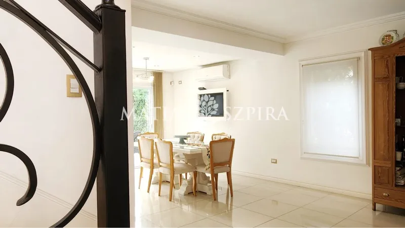 Venta de Casa 4 AMBIENTES en Haras María Eugenia, Moreno APTA CRÉDITOExcelente Chalet Estilo Clásico, en Barrio Privado Haras María Eugenia construida sobre lote de 450m2. Distribuida en dos *planta baja:-Hall de recepción de doble altura con vista a las bellísimas escaleras que se destacan por su baranda realizada en hierro forjado y escalones revestidos en mármol pulido-Living comedor con vista al frente que se conecta a la cocina con barra desayunadora-Cocina con amoblamientos laqueados con excelentes detalles de terminación, columna de horno y anafe a gas empotrado, con instalación para lavavajillas-Toilette de recepción de generosas dimensiones -Lavadero independiente con espacio de guardado bajo escaleraEn planta alta:-Hall de distribución balconea al living-Espacio abierto para escritorio o sala de lectura muy luminosa con salida al balcón y vista al parque, que podría cerrarse ganando un ambiente más!-Dos habitaciones junior con placard completo-Baño completo con bañera-Habitación principal con vista al frente-Amplio vestidor con amoblamientos a medida-Baño en suite equipado con hidromasaje, box de ducha y una gran mesada en mármol travertino con doble bachaA destacar:-Excelente calidad constructiva y detalles arquitectónicos -Puerta principal de doble hoja-Aberturas DVH en aluminio-Cielorrasos con detalles en yesería-Pisos de madera laqueada en las habitaciones-Todos los ambientes cuentan con calefacción por tiro balanceado y refrigeración mediante aires tipo split-Termotanque de alta recuperación a gas para el agua caliente. En el exterior:-Entrada vehicular en pórfido para varios autos quedando dos vehículos bajo techo y entrada de servicio por la cocina -Hermosa galería con formato en ele, parrilla completa, mesada con bacha y espacio para depósito de herramientas-Jardín parquizado y forestado con cerco vivo desarrollado y sistema de riego por aspersión automatizado-Piscina de 7 x 3 con solárium y sistema de filtrado con cajón a medidaHaras María Eugenia sigue consagrándose por ser uno de los barrios más cotizados de la Zona Oeste. Tiene 96 lotes, 700m² promedio, en un entorno tranquilo, rodeado de una hermosa arboleda. Ubicado en el kilómetro 34, en la salida de Graham Bell, tan sólo a unos pocos metros del Acceso Oeste, nos brinda un rápido acceso al Barrio. Se destaca frente a otros emprendimientos, por su cercanía con los colegios de la zona, como así también supermercados y shoppings.Haras María Eugenia, tiene todo lo que estas buscando:Servicios: Gas Natural, Internet, Electricidad, Pavimento, Teléfono y Cable.Amenities: Cancha de Fútbol 5 pasto sintético, Cancha de Tenis, Gimnasio, Parrilla, SUM, Pileta, Plaza de Juegos Infantiles, Sendero Peatonal, Parking de Cortesía y Seguridad 24Hs.COORDINÁ TU VISITA!SUCURSAL RESPONSABLE K41 TEL: *WHATSAPP: **