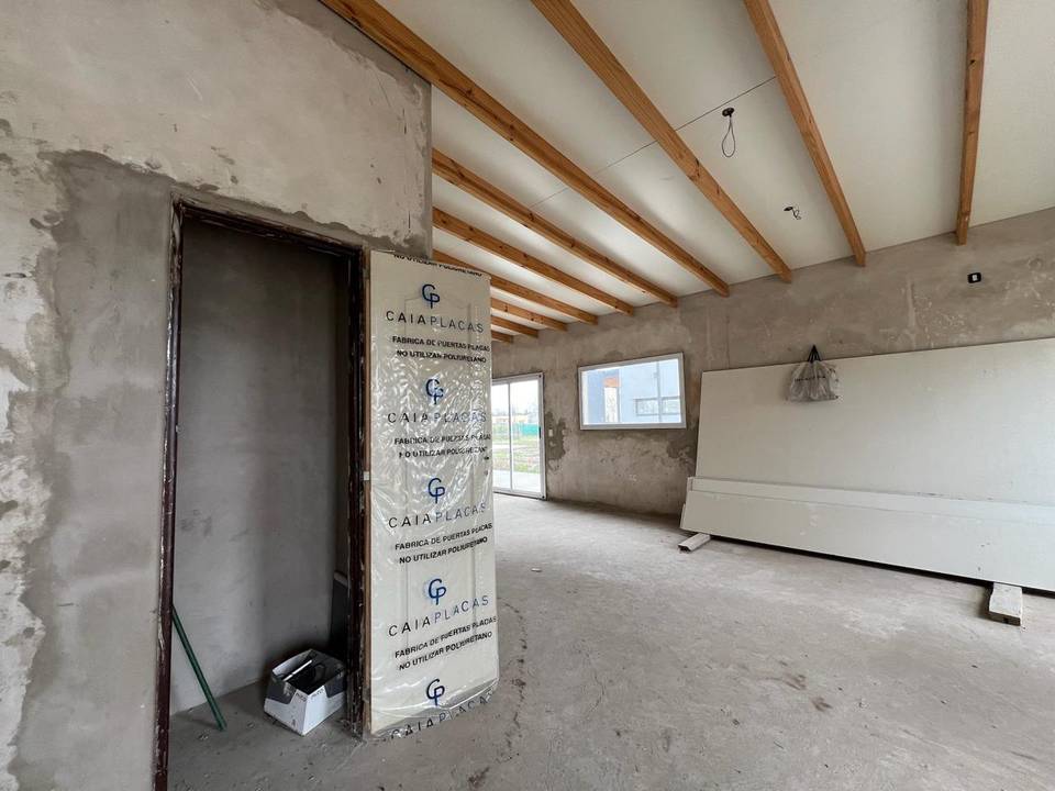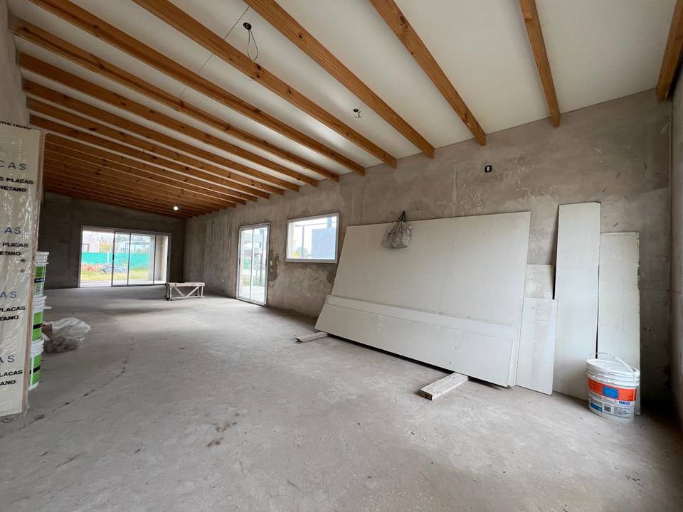VENTA casa a terminar en lote interno en barrio cerrado San Pablo. OPCIÓN A ENTREGAR FINALIZADA POR EL PROPIETARIO O CON TERMINACIONES A DEFINIR POR EL COMPRADOR. Se ingresa al living-comedor a través de la puerta principal, a la izquierda se encuentra un espacio para utilizar como escritorio con posibilidad de cerrarlo o un living privado, toilette de recepción, y puerta que dirige a los dormitorios. A la derecha, un living - comedor amplio con conexión a la cocina integrada, pasa platos hacia la galería cerrada, muebles bajo mesada, espacio para lavavajillas. Hall distribuidor hacia los dormitorios. Dos dormitorios con baño compartido y suite principal con vestidor y baño con ante baño y box de ducha Galería a continuación del living con posibilidad de cerrarla . Parrilla, bacha y mesada. Jardín amplio. Detalles: Calefacción por losa radiante eléctrica. Termostatos sectorizados Termotanque independiente Techo de chapa a dos aguas con cámara de aire. Aberturas de aluminio blancos con DVH Bachas Johnson Pisos de porcelanato gris oscuro Revestimiento tipo Tarquini beige Acerca del barrio San Pablo: El barrio se encuentra ubicado a minutos del Hospital Universitario Austral, complejo de oficinas, universidades y colegios y jardín de infantes, centros comerciales, supermercados, cines, bares y restaurantes, gimnasios, etc. Todos los servicios por redes subterráneas: cloacas, agua, electricidad, y gas. Caminos asfaltados con cordón cuneta, cerco perimetral. Seguridad las 24hs. Área deportiva, con 2 canchas de tenis y una de fútbol, SUM Plaza de juegos Lugar ideal para vivir rodeado de la naturaleza! Ingresos al barrio por calles Leandro N. Alem o Saravi