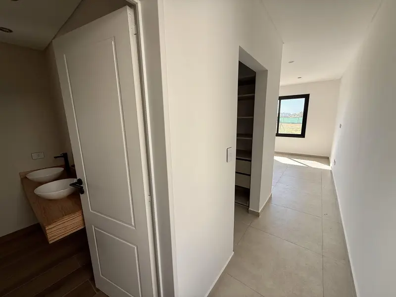GRAN OPORTUNIDAD! Muy linda casa desarrollada en 1 planta de 168 m2 sobre un lote interno en esquina de 547 m2. Al ingresar, nos encontramos con un pasillo de distribución, toilette de recepción y un escritorio con vista al frente de la casa. Jardín interno que aporta gran luminosidad al ambiente principal conformado por la cocina que cuenta con una barra desayunadora y el living comedor con techo de doble altura. Lavadero con ingreso *el exterior, una cómoda galería con parrilla y jardin, pileta en planos lista para construir. Accediendo al sector privado, cuenta con 2 dormitorios que comparten un baño completo y la suite principal con vestidor y baño privado. Todos los ambientes tienen pre instalación de aire acondicionado, la calefacción es por losa radiante. Aberturas doble vidrio con mosquiterosTecho de losa Santa ElisaEl barrio ofrece seguridad privada las 24 hs, calles asfaltadas, doble cerco perimetral con electrificación y sistema de monitoreo. Todos los servicios son subterráneos: agua corriente potable, red eléctrica, gas natural, cloacas, desagües pluviales e internet por fibra óptica. Amenities: 2 canchas de tenis, 1 de fútbol, 1 cancha de paddle, 1 cancha de basket, plaza de juegos y amplios espacios verdes. Su ubicación es estratégica dentro de Pilar del Este, sobre Ruta 25, a 6,5 km del centro de Pilar y a 9 km de Escobar. Desde Panamericana Ramal Pilar (km 46) se accede por Av. Caamaño, una de las principales arterias comerciales de la zona, con colegios, consultorios del Hospital Austral, oficinas, centros comerciales y supermercados En caso de venta, este inmueble está sujeto a la tramitación del Código de Transferencia de Inmuebles (COTI) de conformidad con la normativa vigente (res AFIP 2371/08, 2439/08 y ccs) por parte del propietario.- Bayugar Negocios Inmobiliarios - María Dolores Bayugar - CMPSI Mat Nº 6136.