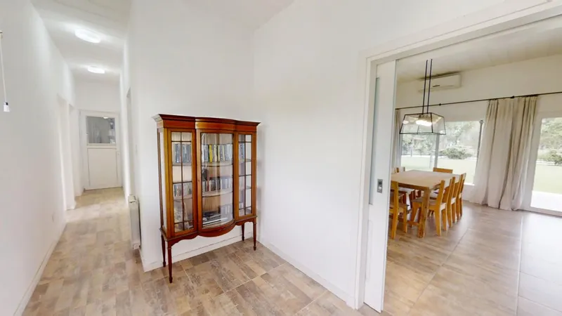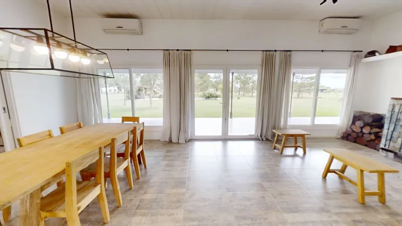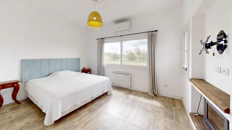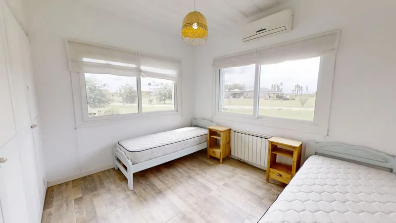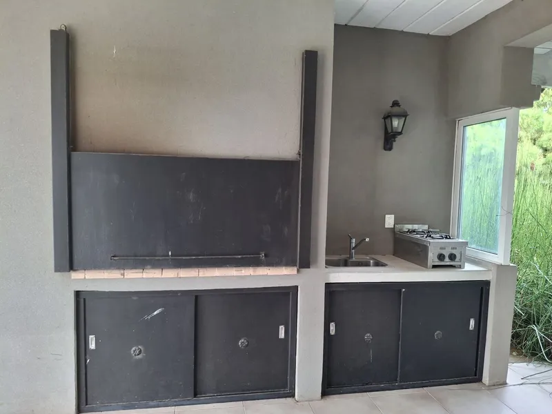 VENTA - CASA en Estancia La Macarena, Barrio cerrados de Chacras - Exaltación de la CruzDirección: Ruta 193 km 18, a solo 5 minutos de Capilla del Señor.Exclusiva y luminosa propiedad ubicada en uno de los barrios más codiciados de la zona. Esta casa de una planta se integra armoniosamente con la naturaleza, ubicada sobre un lote interno de 9.958 m² en una esquina de cul-de-sac, lo que garantiza privacidad y tranquilidad. El terreno está completamente parquizado y forestado, con sistema de riego por goteo. Características destacadas de la propiedad: * Accesos:* Amplio acceso en esquina, con espacio techado para tres vehículos. *Ambientes*: 6 amplios ambientes que se distribuyen de manera funcional para una vida cómoda y relajada. *Living-comedor*: Espacioso y luminoso, con tres grandes ventanales que permiten la conexión directa con la galería. Cuenta con una salamandra Tromen Ombu que ofrece calidez y un ambiente acogedor. *Cocina*: Cocina independiente con comedor diario y salida directa a la galería. Además, cuenta con una puerta corrediza que conecta con el living-comedor, brindando la posibilidad de integrar ambos espacios. *Cuartos de huéspedes*: El dormitorio de invitados está ubicado en un sector apartado de la casa, con baño completo y acceso independiente. Además, dispone de un toilette de recepción. *Zona privada*: A través de un largo pasillo con puerta blindada, se accede al área de descanso, conformada por el dormitorio principal y tres dormitorios adicionales. *Habitación principal en suite*:Con salamandra embutida Ñuke, vestidor y baño privado. Todos los ambientes cuentan con amplias ventanas al exterior que permiten disfrutar de la vista y la luz natural.*Dormitorios secundarios*: Dos dormitorios con placares de pared a pared y un cuarto adicional que puede funcionar como dormitorio o escritorio, con salida a la galería. *Baños*: Un baño completo para los dos dormitorios secundarios.*Calefacción y refrigeración*: La propiedad cuenta con radiadores Peisa en todos sus ambientes con caldera dual Baxi y aires acondicionados frío* inverter, asegurando confort durante todo el año.*Exteriores*:- Gran galería en forma de "L" (aproximadamente 110 m²) que incluye parrilla, bacha y depósito.- Piscina: De 12x4 metros con pergola y cerco perimetral, ideal para disfrutar de los días de sol.- Sector de asador y fogonero Estilo campo, perfecto para reuniones sociales al aire libre.- Dependencia de servicio, con baño y lavadero independiente de la vivienda principal.- Lote forestado, con diferentes especies como robles, pinos, gynkgos, liquidambar, fresnos, nogales, entre otros, con 10 años de edad.Detalles adicionales:Excelentes terminaciones: Aberturas de PVC DVH con laminados antivandálicos y mosquiteros.Seguridad: Sistema de cámaras de seguridad internas y externas, además de fibra óptica instalada.Pisos: Porcelanato en toda la casa, excepto en los baños y la galería.Tanque solar.Caldera dual BaxiDos Termotanques Rheem de alta recuperación.**Estancia La Macarena**: - El barrio privado cuenta con 162 chacras de 10.000 m² cada una, con un excelente entorno rural.- Áreas comunes de alto nivel: Club House, senderos ecuestres, caballerizas, canchas de polo, canchas de tenis, playón polideportivo, driving golf y putting green.- Hermoso bosque con una laguna de 14 hectáreas, y electricidad subterránea en toda la estancia.*Una oportunidad única de vivir en un entorno exclusivo, rodeado de naturaleza y con todas las comodidades y servicios que ofrece la zona.*