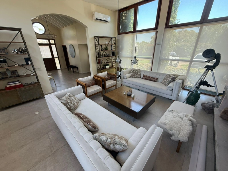 Residencia de categoría en Estancias del Pilar – Barrio La Argentina Ubicada en uno de los barrios más consolidados y buscados del complejo, esta casa combina diseño moderno, calidad constructiva y eficiencia energética, en un entorno natural y seguro. Desarrollada mayormente en planta baja, ofrece comodidad, privacidad y una relación fluida entre interior y exterior, ideal para familias que priorizan calidad de vida. Características destacadas Lote de 1.198 m² 300 m² cubiertos 6 ambientes 4 dormitorios en suite Paneles solares + banco de baterías Apto crédito Distribución Planta Baja - Amplio living comedor con chimenea y vistas abiertas al jardín - Cocina con isla y comedor diario - Family / quincho cerrado con parrilla y baño - Suite de huéspedes - Dos suites junior con placards - Master suite con escritorio, jacuzzi y salida a patio interno - Galería cubierta y patio interno con fuente iluminada - Jardín parquizado con riego automático - Pileta cercada con solárium - Cochera para 5 autos con acceso independiente Planta Alta - Dependencia de servicio con baño y balcón - Lavadero y sector técnico (calderas y sistema solar) Detalles de calidad - Aberturas DVH símil madera - Pisos de porcelanato italiano - Losa radiante - Aires frío/calor en todos los ambientes - Iluminación natural cenital (skylight) Estancias del Pilar - Golf, tenis, rugby, hockey, gimnasio, hípica y náutica proyectada - Colegio Los Robles - “El Pueblo” con servicios y gastronomía - Seguridad 24 hs - 450 hectáreas de naturaleza y acceso al río Luján - Opción de venta con muebles