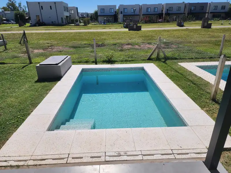 Casa moderna en Barrio Cerrado El Aljibe – Pilar Moderna casa desarrollada en dos plantas, ubicada en el Barrio Cerrado El Aljibe, en un entorno tranquilo y natural, ideal para quienes buscan confort y calidad de vida en Pilar. Distribución Planta baja: Amplio y luminoso living comedor Cocina integrada Toilette de recepción Salida directa a la galería Planta alta: Dormitorio principal en suite Dos dormitorios con placares Baño completo compartido Exterior: Jardín con pileta Amplia galería con parrilla, ideal para reuniones Espacio de lavado con conexión para lavarropas Esta casa se destaca por su diseño moderno y funcional, pensada para brindar comodidad, seguridad y bienestar en un entorno natural. Ideal para familias que buscan un estilo de vida tranquilo sin resignar accesibilidad. Sobre el barrio: Ubicado en Manzanares, una zona en pleno crecimiento dentro de Pilar, El Aljibe es un barrio cerrado que combina naturaleza, seguridad y cercanía a servicios esenciales, a pocos metros de la Ruta Panamericana. Infraestructura y servicios del barrio: Seguridad 24 horas con control de acceso Red de agua corriente y cloacas Electricidad y gas SUM con cocina completa y sanitarios Galería con parrilla Pileta Dos canchas de pádel Cancha de fútbol Plaza de juegos para niños Si buscas un barrio con una excelente relación entre calidad, ubicación y tranquilidad, Barrio Cerrado El Aljibe es una opción que vale la pena considerar. Consúltanos para coordinar una visita.