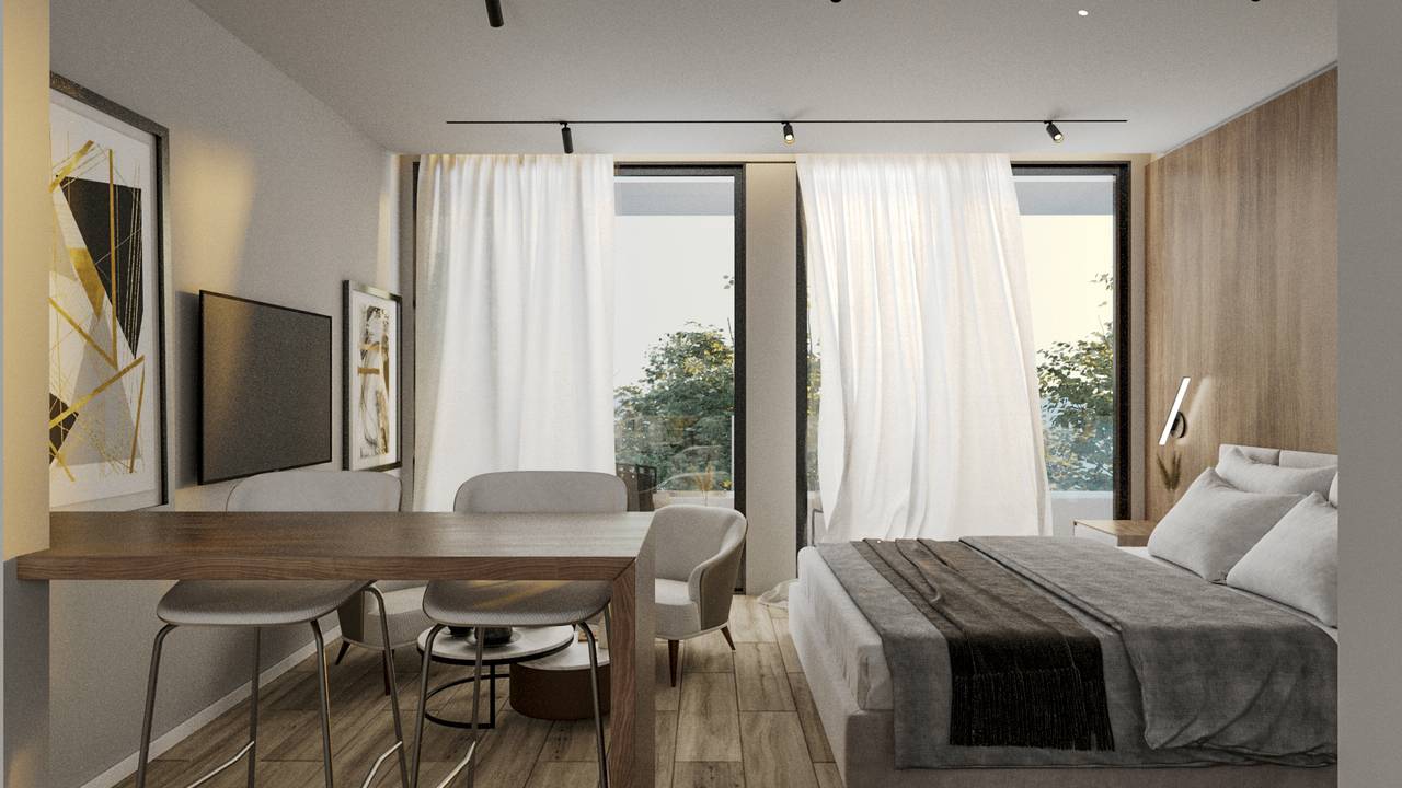 Selecto departamento de dos ambientes, con dormitorio en suite y vestidor, toilette y amplio balcón. Fecha de entrega: MARZO 2026 DESCRIPCION DEL EMPRENDIMIENTO: El edificio se desarrolla en un primer subsuelo destinado a cocheras, salas de medidores, tanques de bombeo y cámara transformadora de electricidad. La planta baja será destinada a cocheras y accesos peatonal y vehicular. El acceso a cocheras de subsuelo se hará a través de rampa vehicular, ascensores y escalera de incendio. Del piso 1° al piso 7° se desarrollan 7 plantas tipo de departamentos con 5 unidades por planta. 2 unidades de 3 ambientes de aprox 72.60 m2 más balcón de 11 m2, 2 unidades de 2 ambientes de aprox. 52 m2 más balcón de 9.60 m2 y un mono ambiente de 32m2 más balcón de 7m2. Del Piso 8° a 10° se desarrollan 3 plantas tipo de departamentos con 4 unidades por planta. 4 unidades de 3 ambientes de aprox 67.30 y 72.60 m2 más balcón de 11 y 12 m2. En piso 11 con retiro sobre el frente se proyectan 1 unidad de 2 ambientes de aprox 50 m2 más balcón terraza de 17 m2 y 1 unidad de 3 ambientes de aprox 69.50 m2 más balcón de 32 m2. En contrafrente al igual que la planta tipo del 8° al 10° Piso de 2 unidades de 3 ambientes de aprox 67.30m2. En el último piso 12 se ubica una unidad de 2 ambientes de aprox 58 m2 más balcón de 22 m2, la sala de calderas de agua caliente, la portería, la sala de usos múltiples, terraza con parrillas, deck, solárium y piscina con duchas. ESTRUCTURA RESISTENTE La misma será ejecutada en hormigón armado. Tanto el cálculo estructural del edificio como la ejecución de la misma se harán conforme a las normativas vigentes del Código de Edificación de la Ciudad Autónoma de Bs As a las normas CIRSOC 101 de cargas y sobrecargas gravitatorias y CIRSOC 201 de estructuras de hormigón armado. ALBAÑILERIA: La totalidad de los trabajos de albañilería serán ejecutados con ladrillos cerámicos huecos o comunes según el caso con espesores según las normativas vigentes por el Código de Edificación antes mencionado. Exteriormente los paramentos serán terminados con revestimientos plásticos continuos marca Llana o similar. Los locales sanitarios serán impermeabilizados y revocados a fin de recibir el revestimiento correspondiente. Los paramentos del resto de las unidades serán terminados con yeso proyectado al igual que los cielorrasos. El encuentro entre ambos llevara buna de terminación. Los contrapisos de todas las unidades estarán terminados con carpetas cementicias aptas para recibir los solados de terminación de porcelanatos. INSTALACION SANITARIA Y GAS: El tendido de cañerías para agua fría y caliente se hará con material de termofusión. Los desagües sanitarios son de AquaDuct, PVC 3,2 para bajadas de pluviales, todo de acuerdo con las normas de AYSA y Gobierno de la Ciudad Autónoma de Buenos Aires. Los Tanques de bombeo y de reserva cumplirán con los cálculos reglamentarios y serán de hormigón armado. La instalación de gas correspondiente a las calderas para agua caliente central se ejecutará en su totalidad con cañerías de termofusión marca Sigas Dema. Se realizará de acuerdo con los reglamentos de Metrogas para la alimentación de las cocinas. INSTALACION ELECTRICA Y BAJA TENSION: El proyecto de instalación eléctrica estará basado en los criterios de confort y funcionalidad en cuanto a la cantidad de bocas de iluminación, tomacorrientes y llaves de encendido. Se realizarán bajo normas A.E.A. normativa para viviendas multifamiliares en todo lo relativo a cañerías, cables, módulos de encendido, llaves térmicas y disyuntores. De acuerdo con el pedido de factibilidad que se realizará oportunamente ante la Empresa Edenor existe la posibilidad de la instalación de cámara transformadora, la cual será ubicada en subsuelo en el espacio destinado a tal fin. Se instalará un sistema de portero visor marca Commax o similar intercomunicado con sector vigilancia. Así mismo cada una de las unidades contara con bocas destinadas a telefonía y televisión por cable/ internet. Una boca por dormitorio, y dos en living. Tapas y teclas marca Jeluz modelo Verona o similar. Artefactos de luz en áreas comunes (hall, palieres y balcones). INSTALACION TERMICA, CALEFACCION, AA: Provisión e instalación de calderas central para agua caliente y calefacción por radiadores, cuya ubicación será dada por el y termostatos digitales programables. Provisión e instalación de equipos individuales frio/calor tipo split de 1º marca 1 por cada ambiente, incluyendo los desagües de condensación. INSTALACION CONTRA INCENDIO: La misma se realizará de acuerdo a la documentación aprobada por el Gobierno de la Ciudad Autónoma de Bs.As. en cuanto a tanques de reserva de agua contra incendio, cañerías, hidrantes, matafuegos y detectores de humo y monóxido de carbono. CARPINTERIA, HERRERIA: Interiores: Puertas de ingreso a las unidades con marcos y hoja de chapa doblada BWG 18 reforzada y relleno cortafuego; el resto de las puertas placa con hojas de madera MDF para pintar. Herrajes tipo sanatorio o similar. CARPINTERIA DE ALUMINIO, BARANDAS DE BALCON: Todo el aventanamiento exterior: Marcos y hojas de aluminio anodizado color natural tipo A30 New. Vidrios de doble vidriado hermético (DVH), y además en puertas-ventanas con laminado 3+3 de seguridad. Las barandas de balcón estarán construidas con perfilaría y pasamanos de aluminio Línea a definir, anodizado natural con cristales de seguridad de acuerdo con las reglamentaciones vigentes. MUEBLES DE COCINA: Todas las cocinas de las unidades se entregaran con amoblamiento completo tanto en muebles bajo mesada como muebles de alacena, según diseño. Serán terminadas con placas de melanina marca Egger o similar y llevarán herrajes de primera calidad marca Hafele o similar en tiradores, bisagras y guías de deslizamiento para cajoneras. Los muebles serán colocados sobre banquinas, cuyo frente será de igu