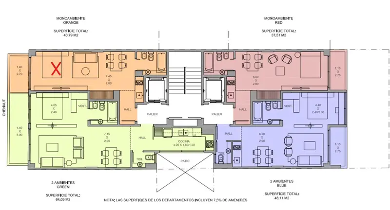 Chenaut 1763 - Las Cañitas / Palermo Edificio Town House #47 INICIO DE OBRA JULIO 2023 TIEMPO ESTIMADO DE FINALIZACIÓN FINALES 2025 MONOAMBIENTE AL CONTRAFRENTE 7° PISO UNIDAD RED (Opción 3 ambientes uniendo 2 unidades) EN POZO Superficie total: 36.51 Ambiente ppal: 6.60 x 2.80 Balcón: 1.15 x 2.75 EN POZO Especificaciones del Edificio - Edificio entre medianeras desarrollado en PB y 12 plantas - PB: Gran Local - Hall de acceso - Laundry. Sala de Máquinas. - 2 ascensores de elevación - 10 pisos de viviendas: Unidades de 1 y 2 ambientes. Opcional: Unificación de unidades a 3 ambientes con dependencia. - En Piso 11º y 12º Áreas de Esparcimiento, técnicas y vivienda de encargado. - Tanques de bombeo y reserva de acero inoxidable De los Amenities - Piso 11º Gimnasio con Sauna y Toilette - Salón de usos múltiples completo con office y toilette, Expansión - Vivienda del encargado - Piso 12º Sector parrilla - Sector Solárium. De las Unidades - Carpinterías con perfilería de aluminio anodizado tipo Aluar línea A40 o similar con DVH (doble vidrio hermético) - Provisión de cañerías de cobre para aire acondicionado tipo Split, con provisión de equipos tipo inverter (gran ahorro de energía y mayor confort ambiental) - Provisión de suministro de agua caliente central. Termos de alta recuperación Rheem o similar. - Cañerías para suministro de agua fría y caliente aquasystem o similar - Solados con porcelanato símil madera 1ra calidad en todos los ambientes incluido palier y balcones - Amoblamiento de cocina con mesada y alacena - Mesada de cocina en mármol con bacha de acero inoxidable. - Griferías monocomando FV / DECA PIAZZA o similar - Anafe eléctrico Domec o similar - Horno grill eléctrico Domec o similar - Baños con mesadas de mármol y revestimiento cerámicos. - Artefactos sanitarios Ferrum o similar - Bañeras de acero enlozadas Ferrum o similar - Instalación eléctrica con disyuntor diferencial y termomagnetica. - Herrajes de 1ra calidad. - Frentes de placard espejados en departamentos Orange y red, sin interiores. No dudes en consultarnos ! Estamos para asesorarte . Nota: La información gráfica y escrita contenida en el presente aviso es meramente a titulo estimativo y no forma parte de ningún tipo de documentación contractual. Las medidas y superficies definitivas surgirán del título de propiedad del inmueble referido. Asimismo los importes de tasas, servicios y expensas indicados están sujetos a verificación. El valor del inmueble indicado en el presente puede ser modificado sin previo aviso. © 2026 Coldwell Banker. Todos los derechos reservados. Coldwell Banker y los logotipos de Coldwell Banker son marcas de servicio de propiedad de Coldwell Banker Real Estate LLC. El sistema Coldwell Banker® está compuesto por oficinas propias de propiedad de una subsidiaria de Anywhere Advisors LLC y por oficinas adheridas al Sistema Coldwell Banker que son de propiedad y operación independientes. En cumplimiento con la normativa vigente, los asistentes NO ejercen el corretaje inmobiliario. La intermediación y conclusión de las operaciones inmobiliarias es desarrollada por Martilleros y Corredores Públicos. Esta Oficina Inmobiliaria se encuentra a cargo de Maria Lucila Ipuche, Cucicba 6106 - CMCPSI 5625 adherido/a al Sistema Coldwell Banker Rio de La Plata, CUIT *, Nicaragua 5651 piso 6.