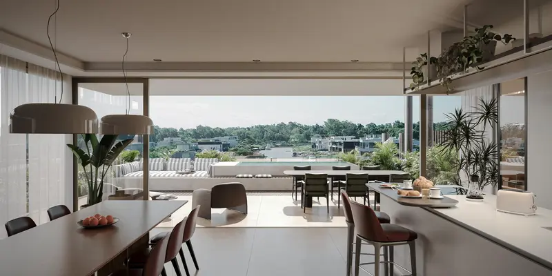 Departamento 3 AMB - Tipo A en THE SO - CONCEPT AZCUY En Nordelta, a orillas del Río Luján y frente al Barrio El Yacht, se alza un enclave de residencias en altura que ofrece un estilo de vida inigualable, en armonía entre la naturaleza y el lujo. Servicios concierge on-demand permanentes, amenities excepcionales, diseño contemporáneo con el verde como protagonista y de calidad insuperable se unen en este emprenimiento único con unidades con vistas al canal, jardines amplios, piscinas y parrillas privadas que invitan a disfrutar momentos especiales. Descubre el equilibrio entre la sofisticación y la naturaleza en un proyecto residencial de excelencia. AMENITIES: Amarras de hasta 55 pies y guardería náutica. Pileta semi olímpica de 25 m y solárium exterior. Gimnasio con equipos de última generación. Servicios de marinería, jardinería y pileteros. Servicio de gastronomía + Deli market. Wine lounge bar. Juegos para niños indoor y outdoor. Salón de fiestas. Playón deportivo. Sala de relax* Área pet friendly. Senda aeróbica de 600 m. Coworking. Espacio de arte. Estacionamiento de cortesía. Huerta y vivero. Todas las unidades tienen orientación al norte y cuentan con jardines, parrillas y piscinas propias. Living, comedor y cocina se integran para darle versatilidad y amplitud a los espacios. En Azcuy entendemos que el mejor lugar para vivir tiene que estar en armonía con el planeta. Por eso, trabajamos cada día para que la forma de construcción y la operación de nuestros edificios tengan el menor impacto ambiental posible a la vez que impulsan estilos de vida más sostenibles. EQUIPAMIENTO ENERGÍA RENOVABLE: Paneles solares Tier 1 que alimentan la demanda de energía de las áreas comunes. CLIMATIZACIÓN: Equipos de aire acondicionado Daikin VRV Small o similar, con elevado coeficiente de desempeño y ahorro de energía. Todas las condensadoras se encuentran ubicadas en las azoteas. ABERTURAS VIDRIADAS: Compuestas por perfilería ALUAR / A40 y RPT (ruptura de puente térmico) y vidrios reflectivos VASA Cool Lite SKN 154 con control solar y baja emisividad. La altura de las aberturas es de 2.60 metros. SISTEMA BMS: Monitoreo completo del edificio que permite la centralización de los datos principales y conocer la performance del edificio. ASCENSORES: Equipos con clasificación energética Clase A Schindler, marca suiza líder en el mercado. GRUPO ELECTRÓGENO: Equipo Sullair que garantiza el funcionamiento de los servicios en los espacios comunes. PAISAJISMO: Parquización consciente de los espacios comunes y de las unidades funcionales. Con riego automatizado, control de nutrientes y un sistema de recolección de agua de lluvia. EQUIPAMIENTO EN COCINAS: Anafe de inducción Miele con zona de cocción PowerFlex para la máxima potencia. Horno eléctrico multifunción Miele con timer, interior XL y mandos ocultos Easy Control. Piletas de cocina CM de origen italiano. EQUIPAMIENTO EN BAÑOS: Griferías Steinberg de origen alemán. Bachas de baño Olympia de origen italiano. Bañeras exentas Kreiner fabricadas en República Checa. TERMINACIONES: Porcelanato de Refin Ceramiche, mármol de Carrara y travertino, todos de origen italiano. *Financiación: 30% de Adelanto y 36 Cuotas en USD Consulta por Espacio de Cochera y Baulera Las medidas, porcentuales, superficies y designaciones fueron proporcionadas por el propietario, las definitivas de cada planta son las que resultan del título de propiedad y del plano municipal. El precio puede estar sujeto a modificaciones. En cumplimiento con la normativa vigente, los asistentes NO ejercen el corretaje inmobiliario. La intermediación y conclusión de las operaciones inmobiliarias es desarrollada por Martilleros y Corredores Públicos. Esta Oficina Inmobiliaria se encuentra a cargo de María Virginia Mattio CSI 6752 y F. Lusarreta CUCICBA 9385, adheridas al Siste