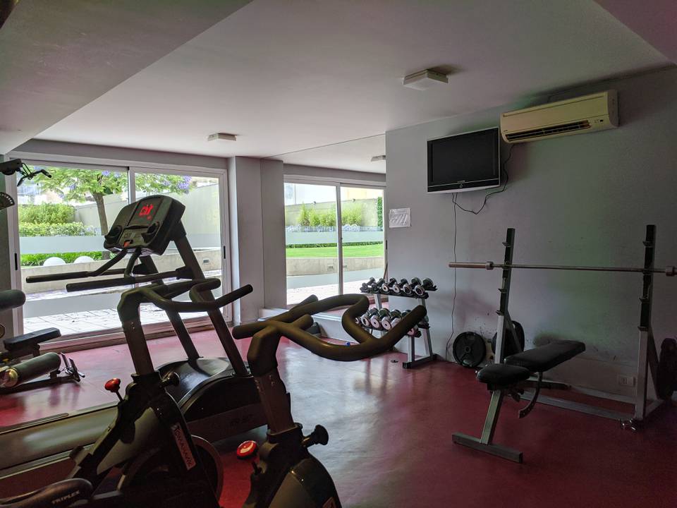 En torre de máxima categoría con reja perimetral y cabina propia de vigilancia 24hs Amplio departamento de un dormitorio absolutamente luminoso. Living comedor a balcón corrido cocina lineal con descarga para lavarropas baño completo y dormitorio con placard de frentes espejados. La unidad cuenta con piso radiante individual para calefacción y esta preparada para colocar aire frio en todos los ambientes por conductos. La torre es de las mas completas en amenities de la zona contando con piscina rodeada de un jardin de casi 2000m2 plaza seca para niños sauna gimnasio SUM y lavandería. La unidad se vende con cochera fija cubierta incluida y lugar para bicicletas. Venta no supeditada a la compra ni busqueda.