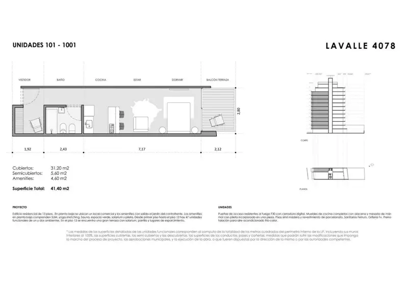Superficie total 41m²
