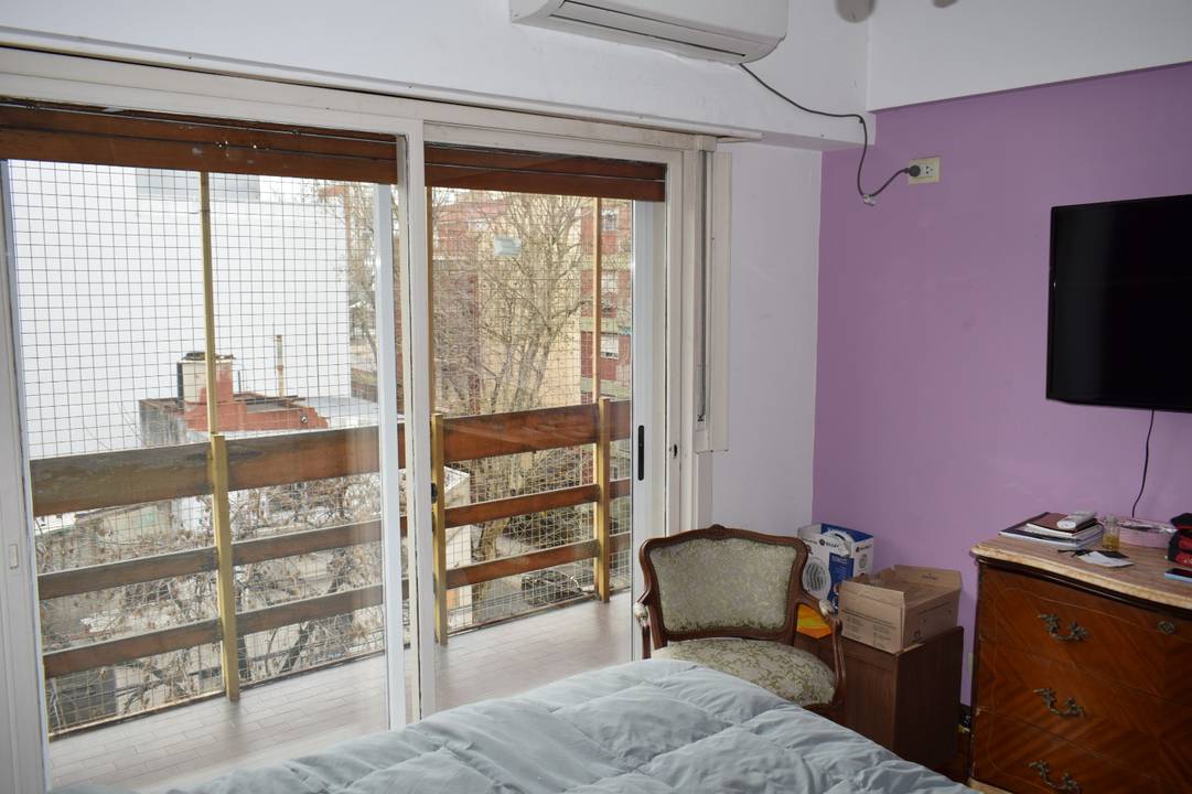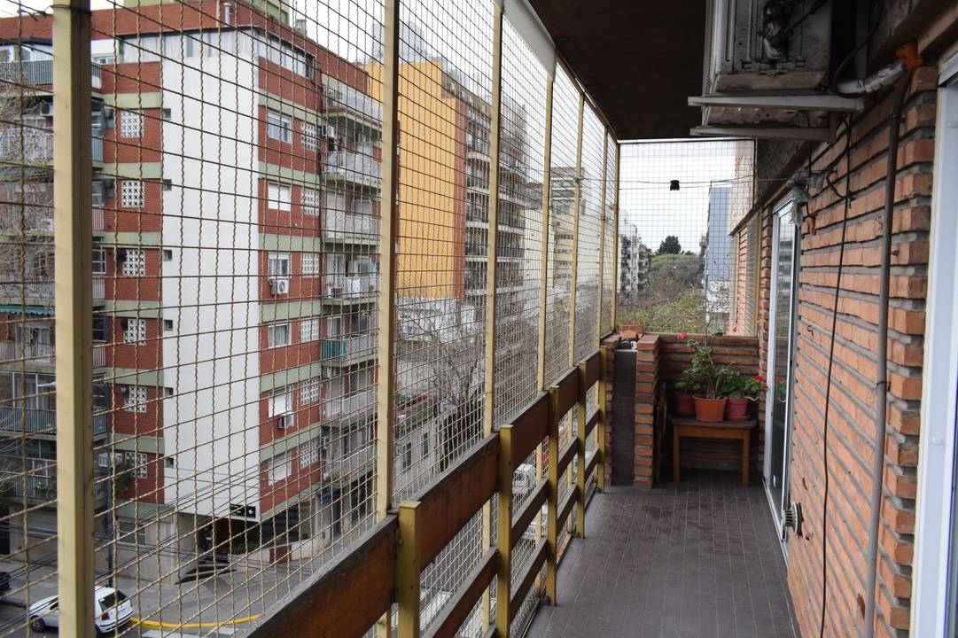 Amplio departamento 2 ambientes con baulera, en un cuarto piso al frente con balcón corrido. La disposición de la propiedad ubica el living y cuarto al frente siendo ambos muy luminosos. Cuenta con aberturas de doble vidrio adicionales lo que lo hace sumamente silencioso. Cocina y lavadero separados con orientación a pulmón favoreciendo la circulación de aire. Baño completo con ventilación lateral. Excelente ubicación a 2 cuadras de Plaza Irlanda conectado por numerosas líneas de colectivo. El edificio cuenta con terraza compartida y acepta mascotas.