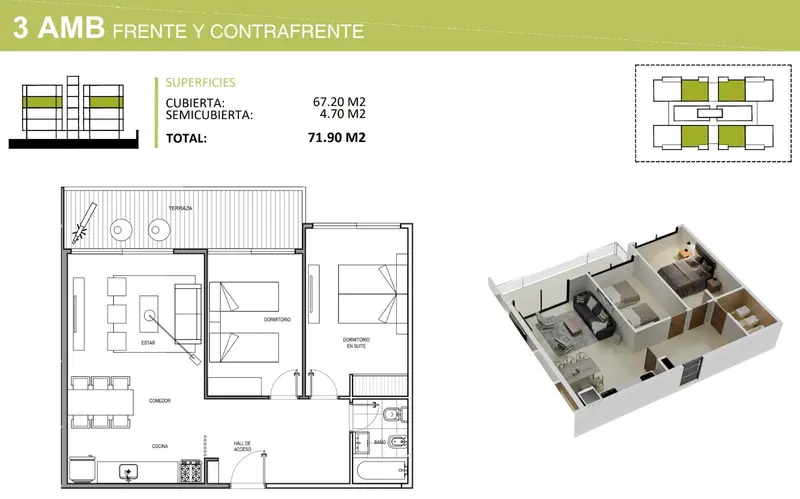 Superficie total 77m²