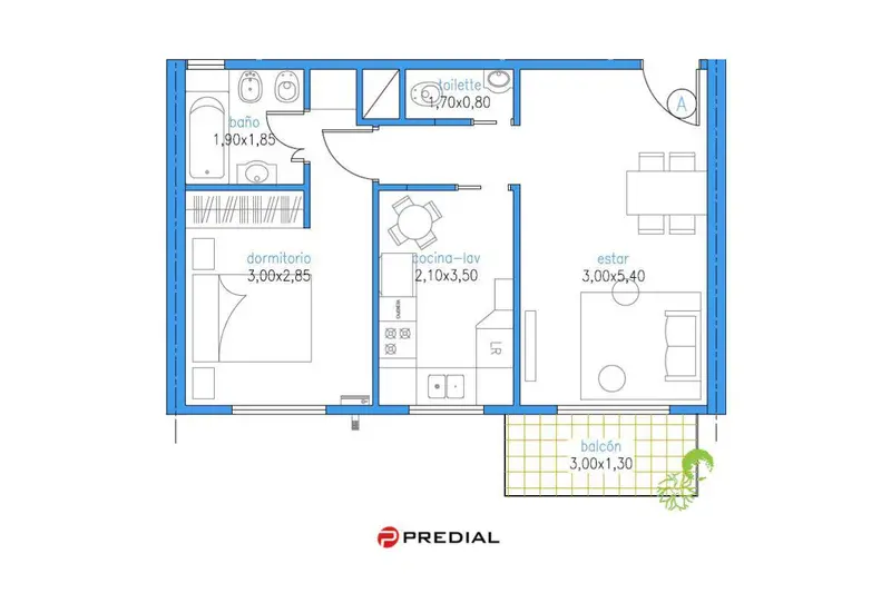 Departamento de dos ambientes, al ingreso nos encontramos el living que se caracteriza por su luminosidad y calidez, y se comunica con un balcón privado. La cocina viene equipada con una estufa de gas de 4 hornallas y cuenta con mobiliario superior e inferior que maximiza el espacio de almacenamiento. Además, dispone de un área designada con las conexiones necesarias para la instalación de un lavarropas. En cuanto a las instalaciones sanitarias, el inmueble dispone de un baño completo y un toilette, ambos dotados de revestimientos cerámicos de alta calidad que realzan su estética. El dormitorio principal se distingue por su amplio placard empotrado, diseñado a medida para optimizar el espacio. Las ventanas de PVC con persianas enrollables no solo permiten regular la entrada de luz natural, sino que también contribuyen al aislamiento térmico. Para mayor confort, la habitación cuenta con una estufa de tiro balanceado. El edificio cuenta con una terraza de uso común, equipada con una parrilla. Este emprendimiento se encuentra estratégicamente ubicado a pasos de las principales avenidas de la ciudad, incluyendo Juan B Justo y Av. San Martín. Esta conveniente ubicación ofrece fácil acceso a una variedad de servicios, transporte público y lugares de interés. Consulta por mas unidades en este edificio Posee acceso para personas con movilidad reducidaPredial Propiedades S.R.L. Mat CUCICBA 3269